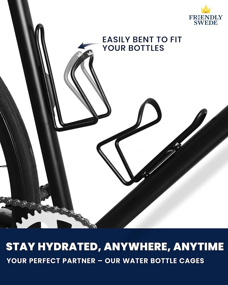 • ✅ يناسب معظم زجاجات المياه ذات الحجم القياسي: حامل دراجة زجاجة المياه مصنوع ليناسب أي زجاجة مياه بالحجم القياسي. يمكن ثني قفص زجاجة مياه الدراجة لضبط الحجم ليناسب الزجاجة.