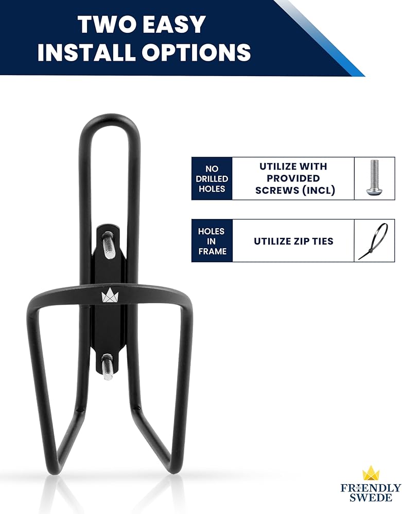 • ✅ سهلة التركيب: 4 × مسامير M5x0.8 ذات حجم قياسي لتركيب زجاجات المياه. استخدم مفتاحًا سداسيًا مقاس 4 مم لربط الأقفاص في فتحات المسامير الموجودة على الإطار. إذا لم يكن الإطار الخاص بك مزودًا بفتحات مثقوبة، فقم بتثبيت حامل زجاجة ماء الدراجة باستخدام أربطة مضغوطة.