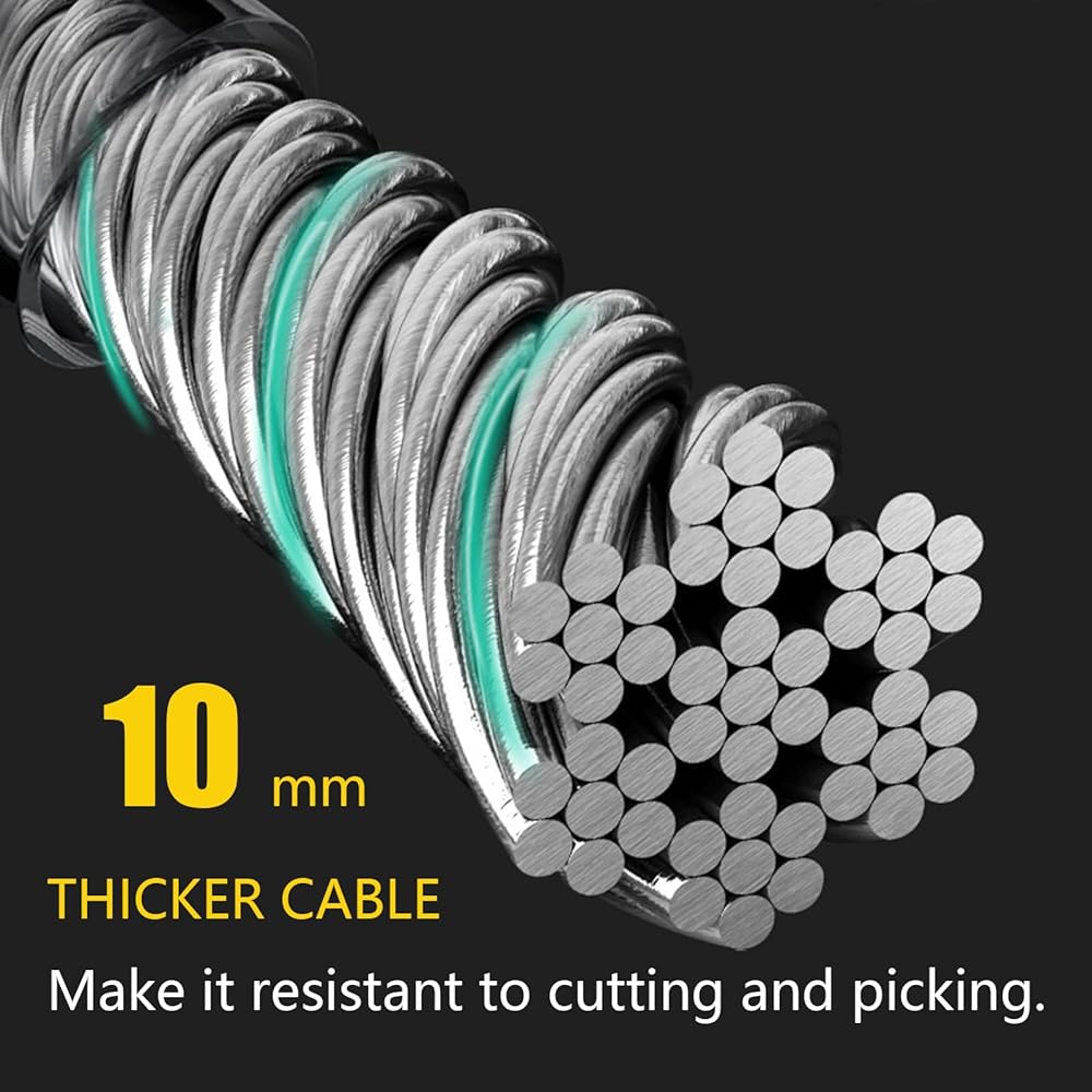 متنوع القدرات. يتيح لك قفل الكابل تأمين الدراجة لمختلف الأشياء الثابتة دون أي صعوبة. يمكن استخدام قفل الدراجة هذا للدراجات الجبلية على الطرق والدراجات النارية والدراجات البخارية والمعدات الرياضية وصناديق الأدوات والسلالم والأبواب.