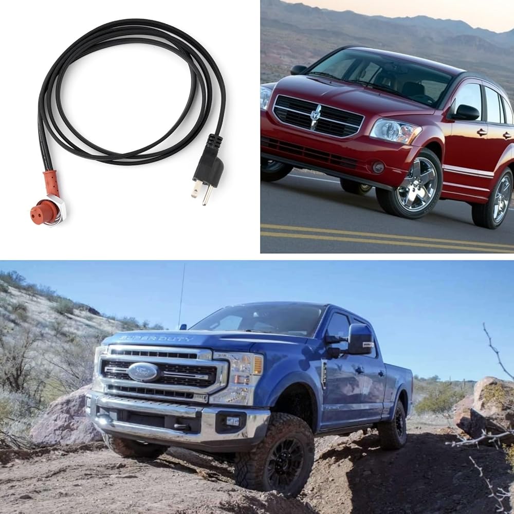 Application: 16 AWG block heater cord cordset is suitable for freeze plug heater, oil pan heater, engine block heater, transmission heater. Compatible with 1989-2018 Dodge Ram Cummins Diesel 5.9, 6.7 L, Ford 7.3 6.0 6.4 6.7 L Powerstroke Diesel F350 250,1989-Current Dodge Cummins 5.9L Diesel Engines,2007-Current Dodge Cummins 6.7L Diesel Engines.