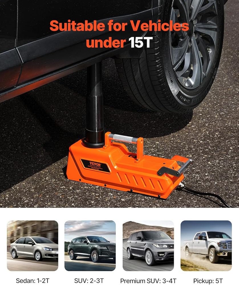 طقم جاك مقص كهربائي: ماكس. السعة: 3.0 طن/6600 رطل. نطاق الرفع (رأس الرفع القصير): 5.1 بوصة - 14.6 بوصة/130-370 مم. نطاق الرفع (رأس الرفع الطويل): 6.7 بوصة - 16.5 بوصة/170-420 مم. تعتبر مجموعة مقابس السيارة الكهربائية هذه منقذًا للحياة أثناء حالات الطوارئ على جانب الطريق ويمكن استخدامها لإصلاح المرآب في المنزل. إنها مناسبة لسيارات السيدان وسيارات الدفع الرباعي والشاحنات الصغيرة أو أي مركبة تناسب قدرتها.