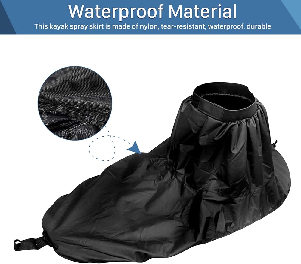 تنورة رش كاياك من يوسو هيلث جير، غطاء رش كاياك، ملحقات غطاء تنورة زورق مقاومة للماء للجلوس داخل قوارب الكاياك (أسود)