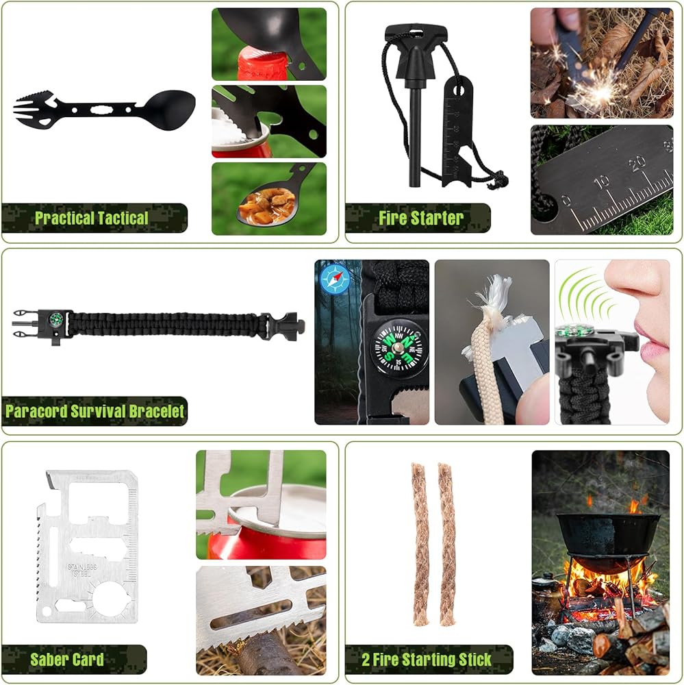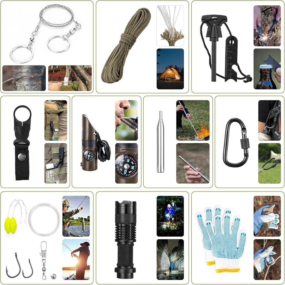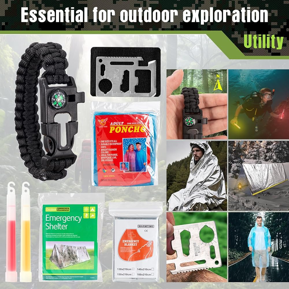 From camping essentials to disaster preparedness, the Camping Survival Kits provide everything you need for survival in one convenient package, including a flare gun and doomsday preppers supplies for ultimate readiness.