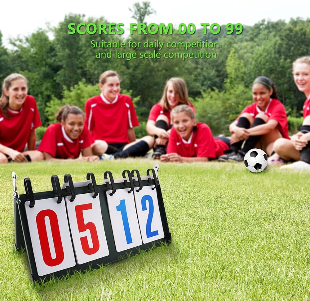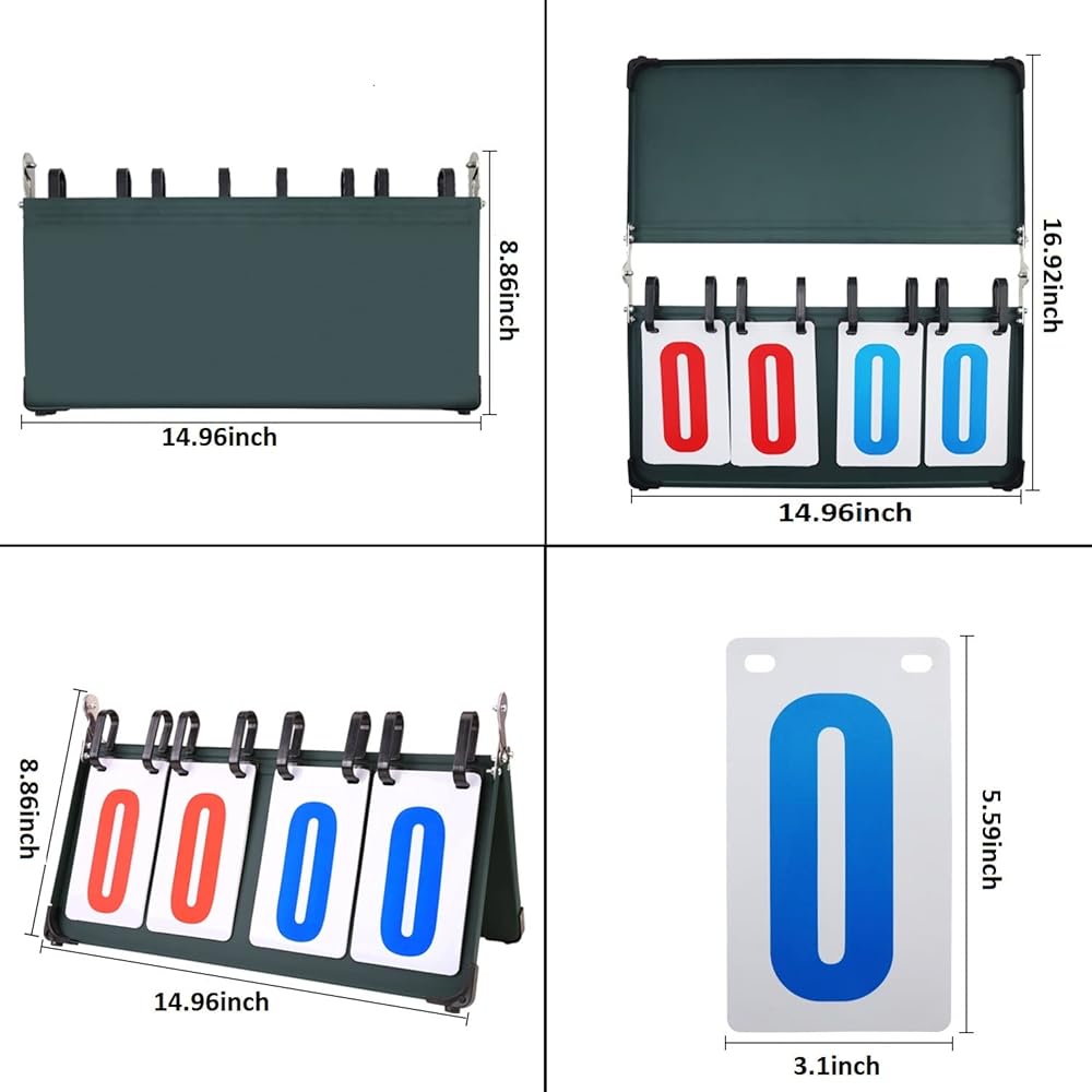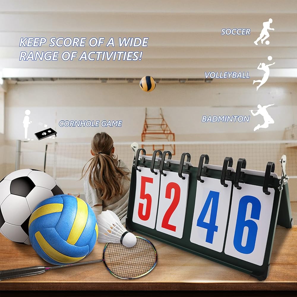 لوحة النتائج المكونة من 4 أرقام من 1 إلى 99، قلابة محمولة على سطح الطاولة وحافظة النتائج لكرة الطائرة وكرة السلة وتنس الطاولة وأي رياضة تنافسية.
