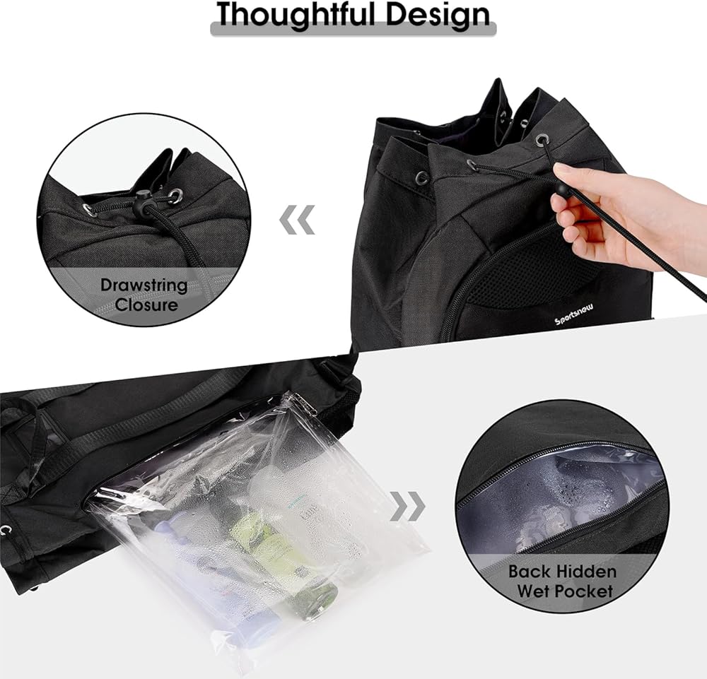 • 【جيب خلفي رطب مخفي】لقد صممنا جيبًا رطبًا مخفيًا بسحاب يقع في الجزء الخلفي من حقيبة الظهر ذات الرباط لتخزين الغسيل أو التروس المبللة. وهي مبطنة بمادة PVC المقاومة للماء لمستلزمات النظافة الخاصة بك (مثل الصابون والشامبو ومعجون الأسنان) أو أدوات التمرين مثل المناشف والبدلات المتسخة وما إلى ذلك. وخطاف سياج داخلي سميك في الأعلى للتعليق على السياج بسهولة