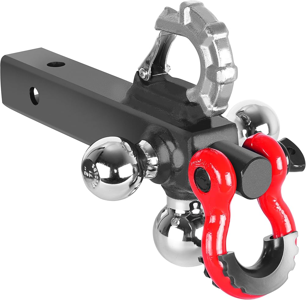 • 💙Innovative Design: The combination of a 3 ball hitch, a 360-degree swivel base, a 3/4" D-ring shackle, and a Tactical Hook enhances the versatility of towing and recovery operations.