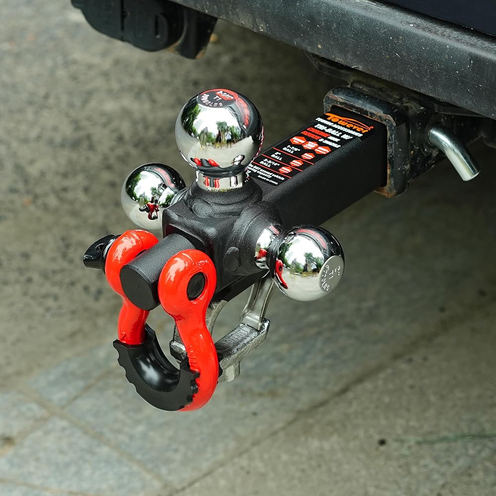 Introducing our remarkable towing ball mounts, designed with a unique and versatile configuration. Its 2 ball hitch and 360-degree swivel base, coupled with a 3/4" D ring shackle and Tactical Hook, make the trailer hitches exceptionally adaptable for towing and recovery purposes.
