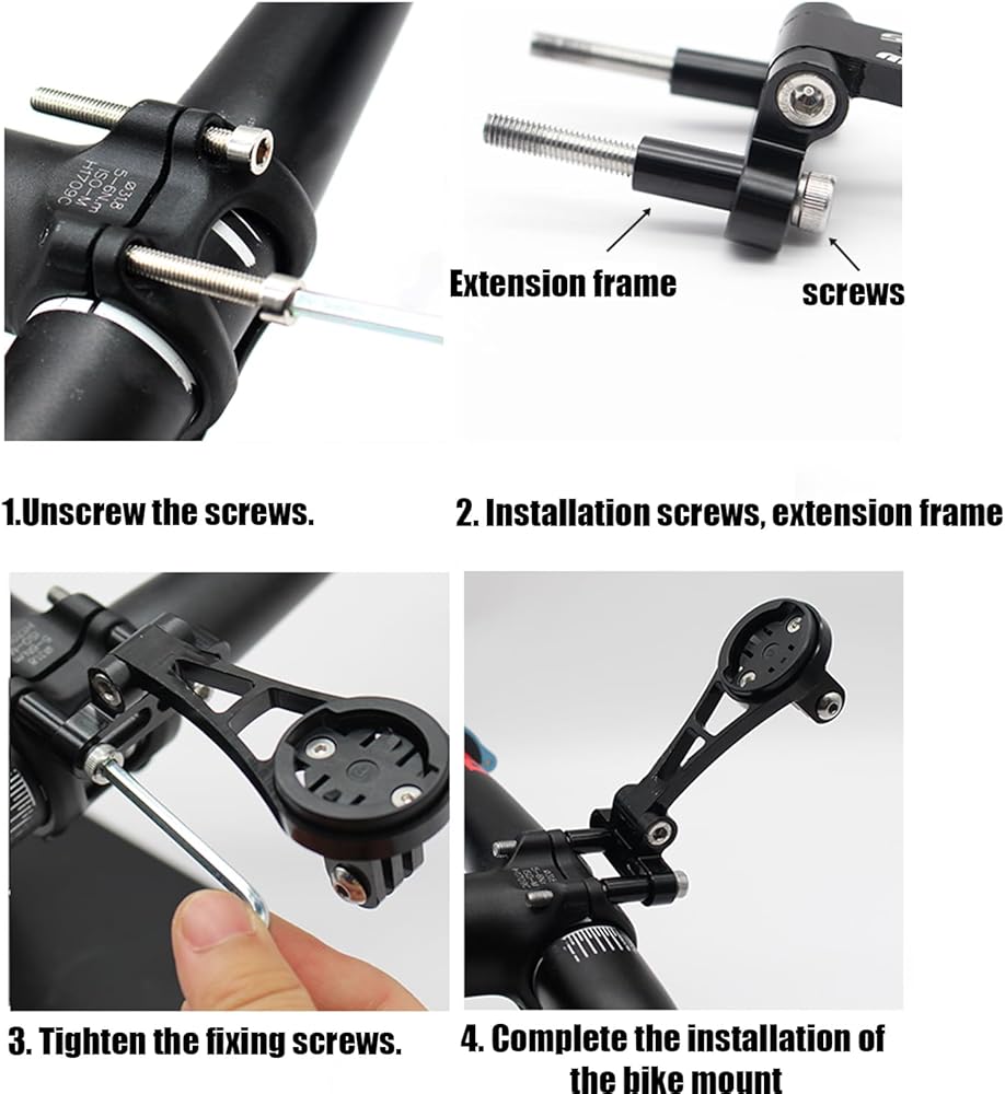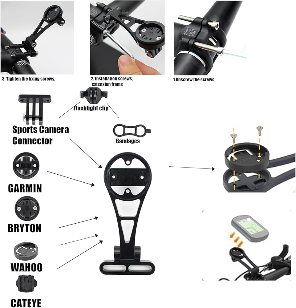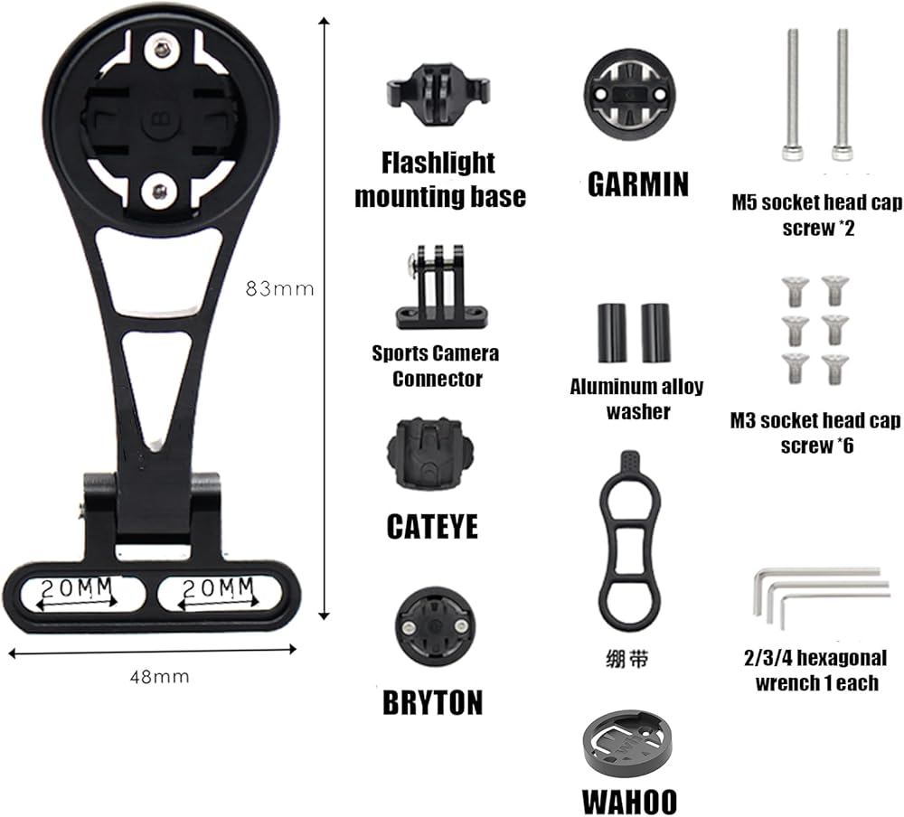 ملحق يجب اقتناؤه لعشاق ركوب الدراجات: حامل كمبيوتر الدراجة هذا متوافق مع مجموعة واسعة من أجهزة كمبيوتر ركوب الدراجات، متوافق مع garmin edge 25 130 200 500 510 520 520plus 530 800 810 820 830 1000 1030 1040 أجهزة كمبيوتر الدراجة GPS وWahoo. كما أنها مناسبة لتركيب أجهزة الكمبيوتر الخاصة بالدراجة كاتي وبرايتون. بالإضافة إلى ذلك، فهو يسمح بكاميرات الحركة والهواتف الذكية وأضواء الدراجة (ملاحظة: يناسب مسافة مركز البراغي الجذعية أقل من 42 مم).