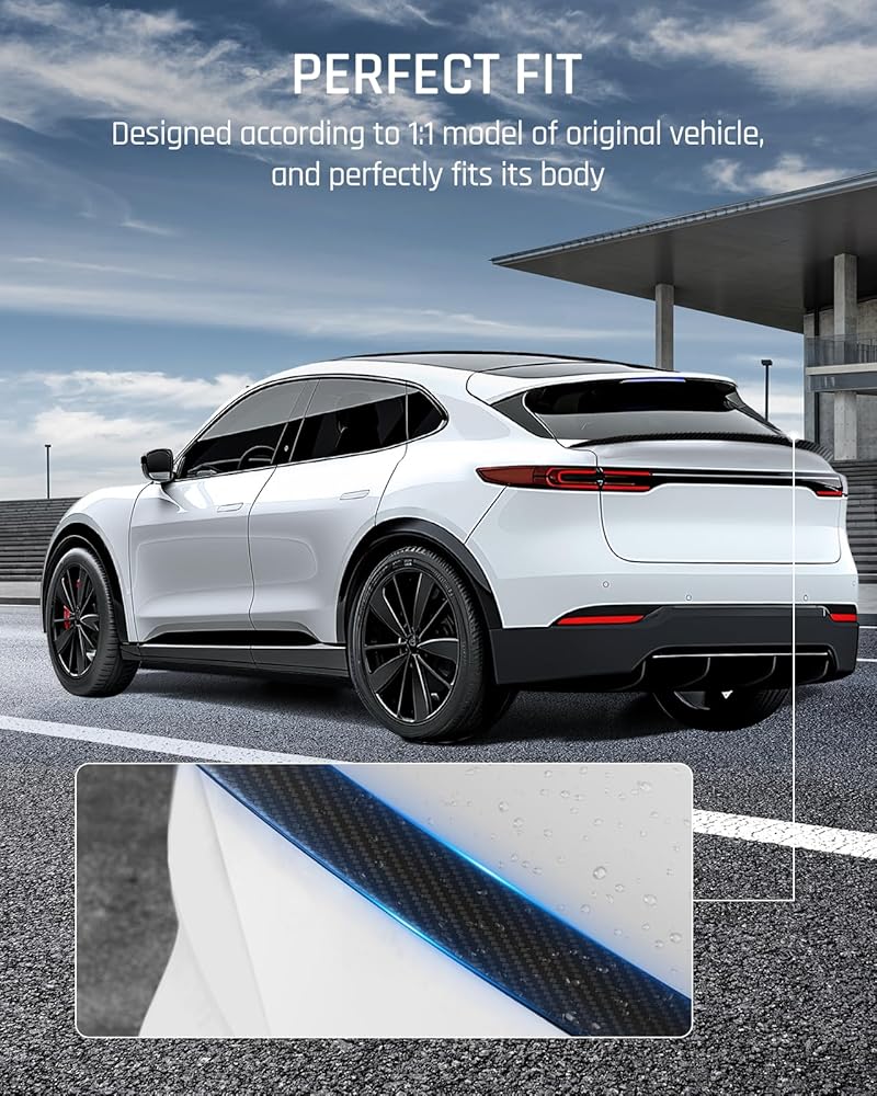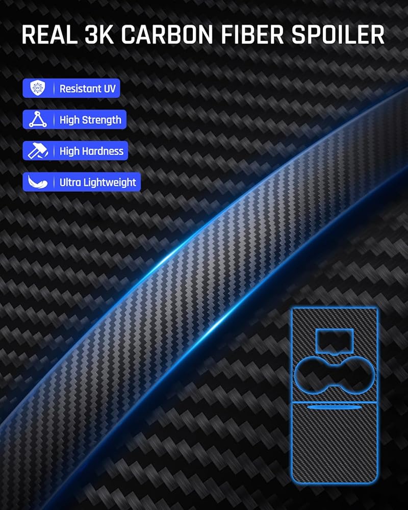 ألياف الكربون الحقيقية: مصنوعة من نسيج ألياف الكربون الجاف Toary T700 3K، مصممة لتدوم طويلاً وتتميز بخفة الوزن ومقاومة للأشعة فوق البنفسجية. يتمتع المفسد المصنوع من ألياف الكربون من طراز تيسلا بالقدرة على تقليل معامل مقاومة الرياح، مما يؤدي إلى تقليل استهلاك الطاقة وتحسين القدرة على التحمل.