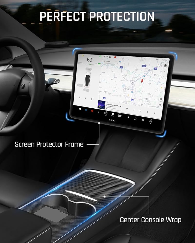 Tesla Model Y Spoiler Real Carbon Fiber Tesla Rear Spoiler مع ألياف الكربون مركز وحدة التحكم التفاف مجموعة غطاء حامي الشاشة الإطار لملحقات Tesla Model Y 2023-2020 أسود غير لامع (مجموعة من 3)