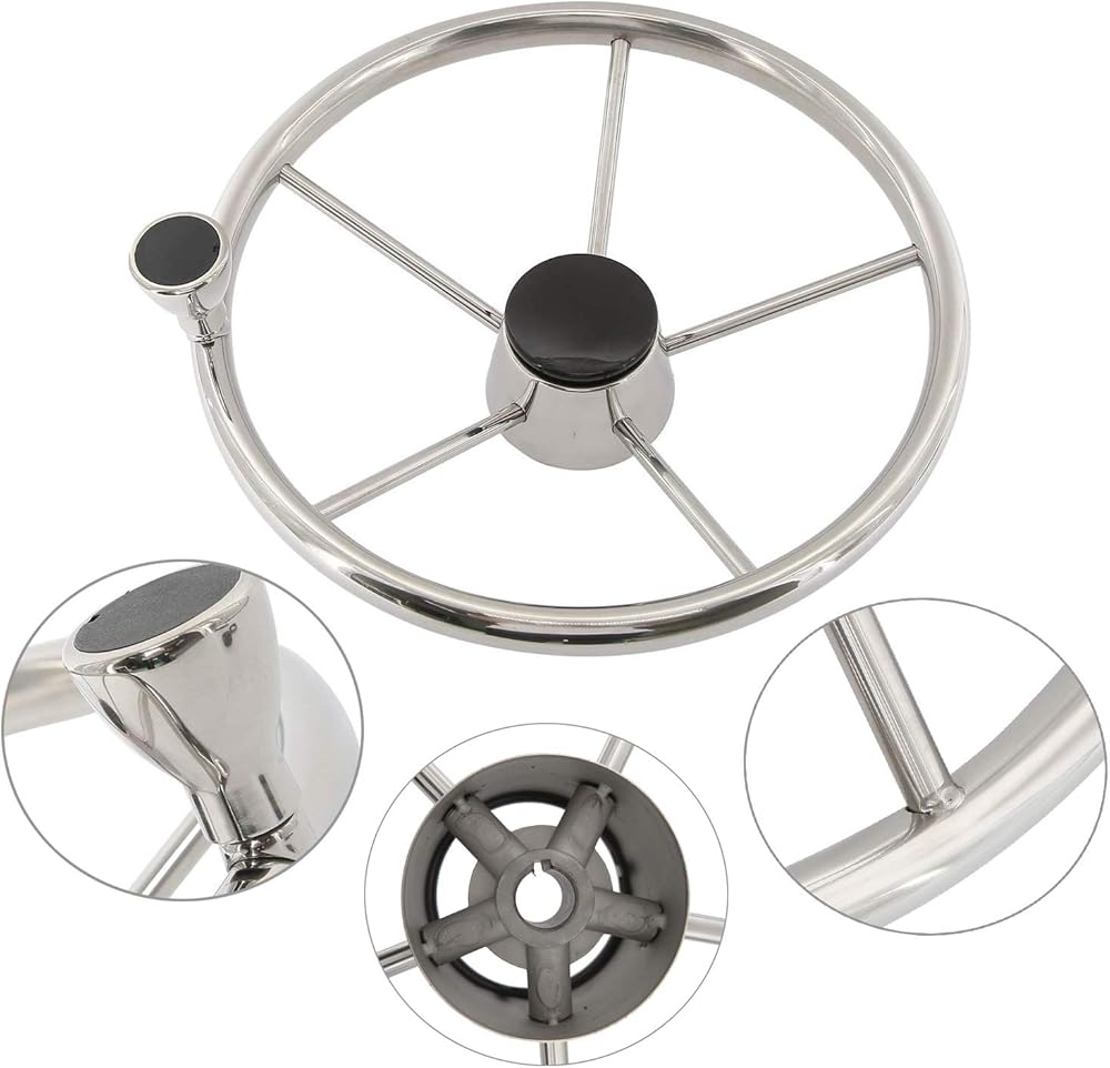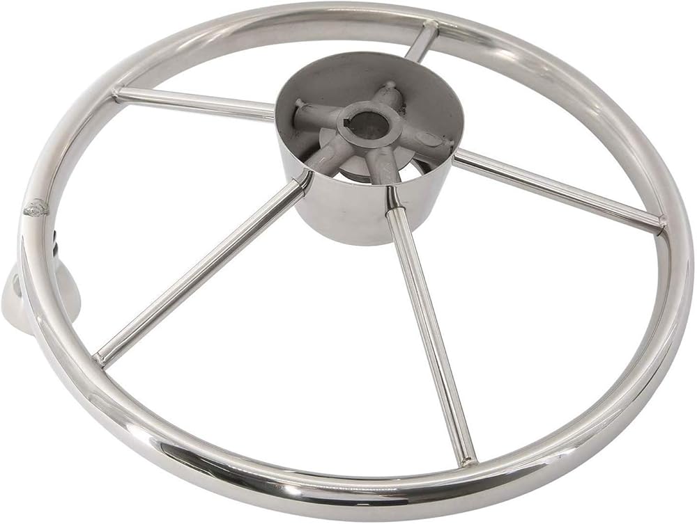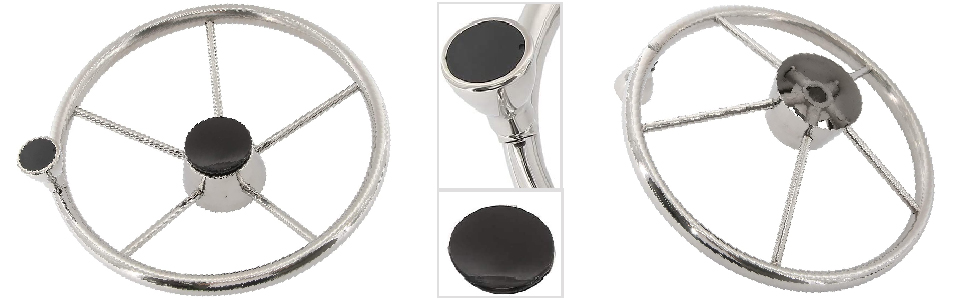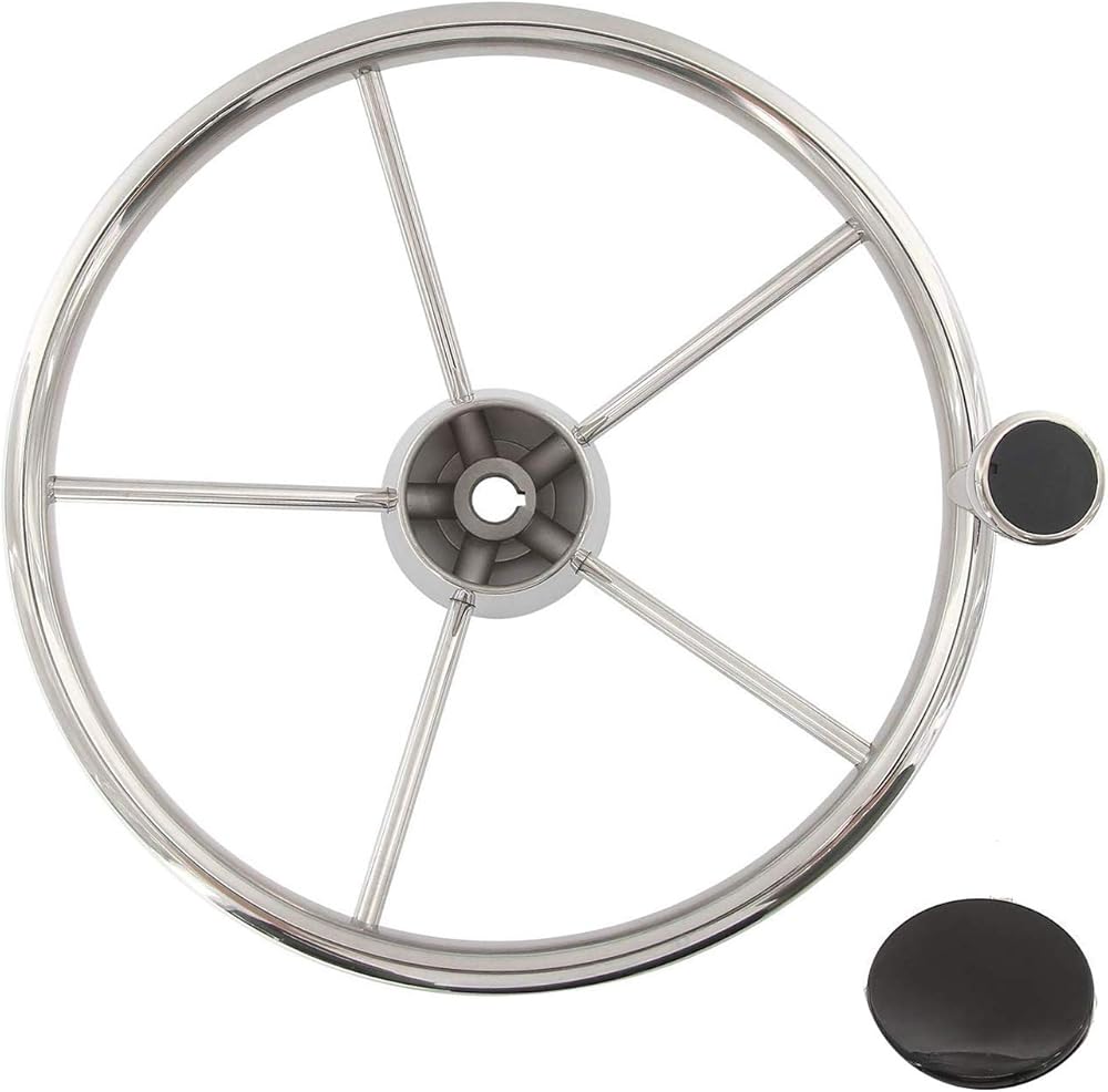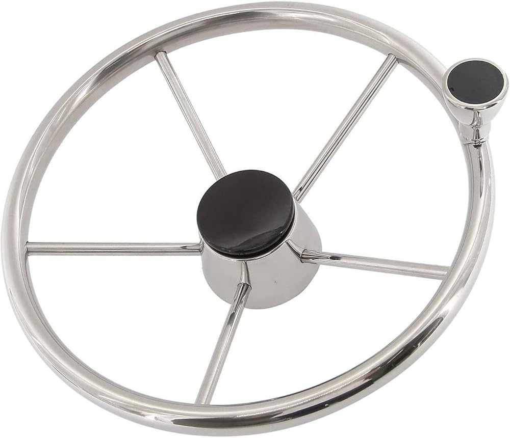 NovelBee 5 Spoke Dia.15-1/2 "عجلة قيادة قارب من الفولاذ المقاوم للصدأ مع مقبض تحكم وغطاء
