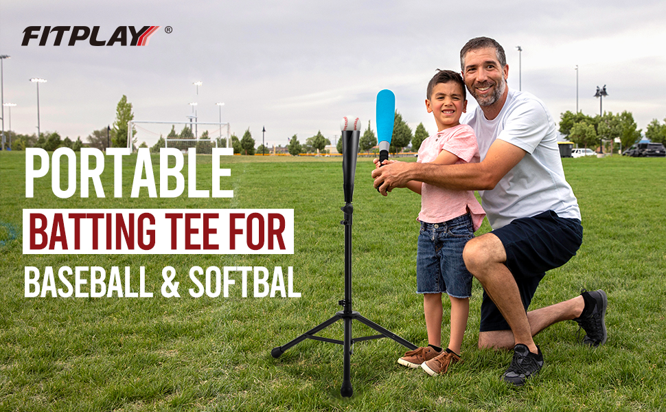 تي شيرت البيسبول WEEPALM - تي شيرت محمول للبيسبول/الكرة اللينة مع قطعتين من المطاط القابل للاستبدال وقاعدة حامل ثلاثي القوائم، تعديل الارتفاع من 27 إلى 43 بوصة للأطفال والكبار، سهل الحمل
