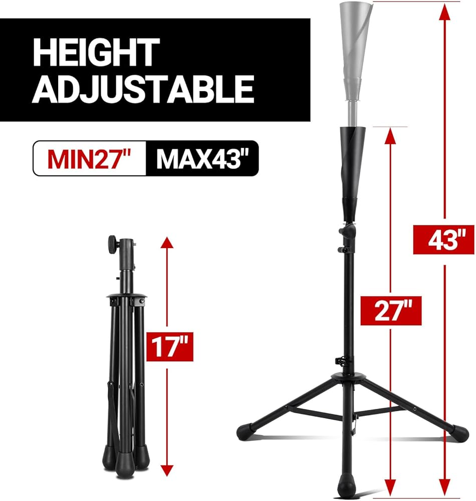 ⚾【ارتفاع قابل للتعديل لجميع الأعمار】يمكن تعديل ارتفاع تي شيرت البيسبول من 27 بوصة إلى 43 بوصة للأطفال والشباب والكبار. إنها أفضل أداة مساعدة لتدريب البيسبول لممارسة التأرجح، من المبتدئين إلى المحترفين، ومن الدوري الصغير إلى الدوري الرئيسي.