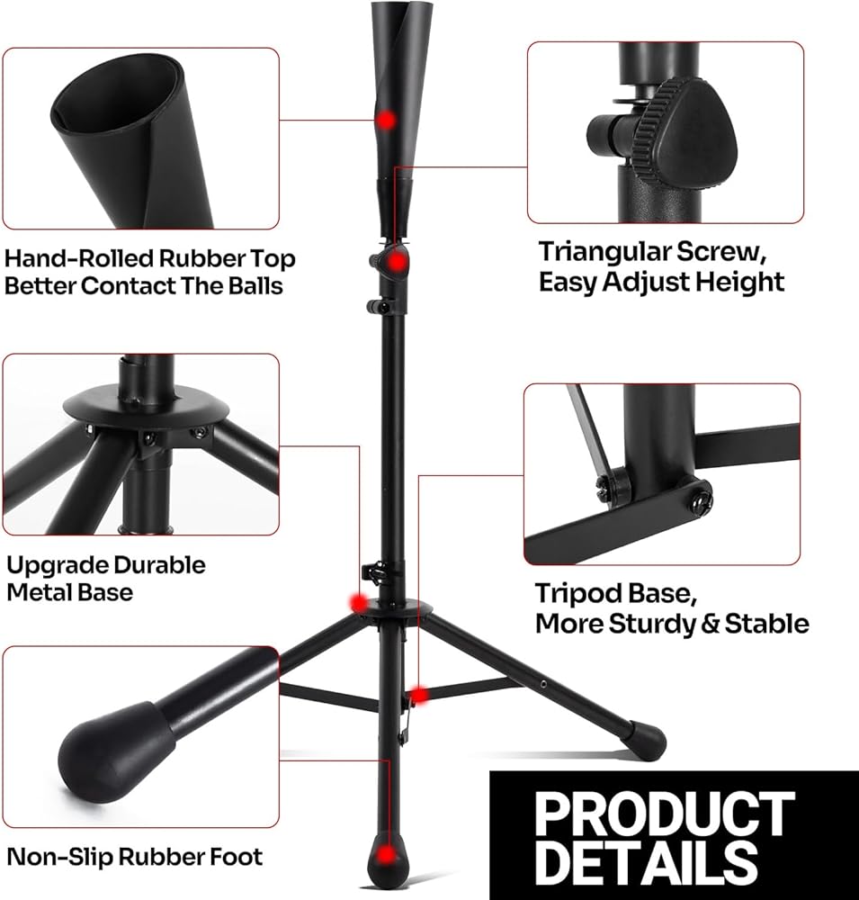 ⚾【حامل ثلاثي القوائم ثابت مع أكمام غير قابلة للانزلاق】تتميز تي شيرت البيسبول للضرب بقاعدة حامل ثلاثي القوائم متينة، والتي يمكن أن توفر دعمًا ثابتًا للضرب العلوي؛ الساق السفلية عبارة عن كم مطاطي غير قابل للانزلاق، والذي يمكن أن يعزز الإمساك على أي سطح وليس من السهل تحريكه وسقوطه.