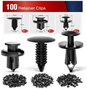 Color: black Material: Nylon Retainer Sizes: 16 most Popular Sizes,620 pcs /set Package weight: 1kg Packing List: 620PCS auto car body Retainer clips 1PC premium nylon fastener rivet clips removal tool 4PCS Car Panel removal tools trim removal tool 5PCS Longer plastic cable ties 5PCS Shorter plastic cable ties 1 x Plastic Storage Carry Case Note: Please check the size, type and shape in the pictures and description first to make sure the item is the one that you need.