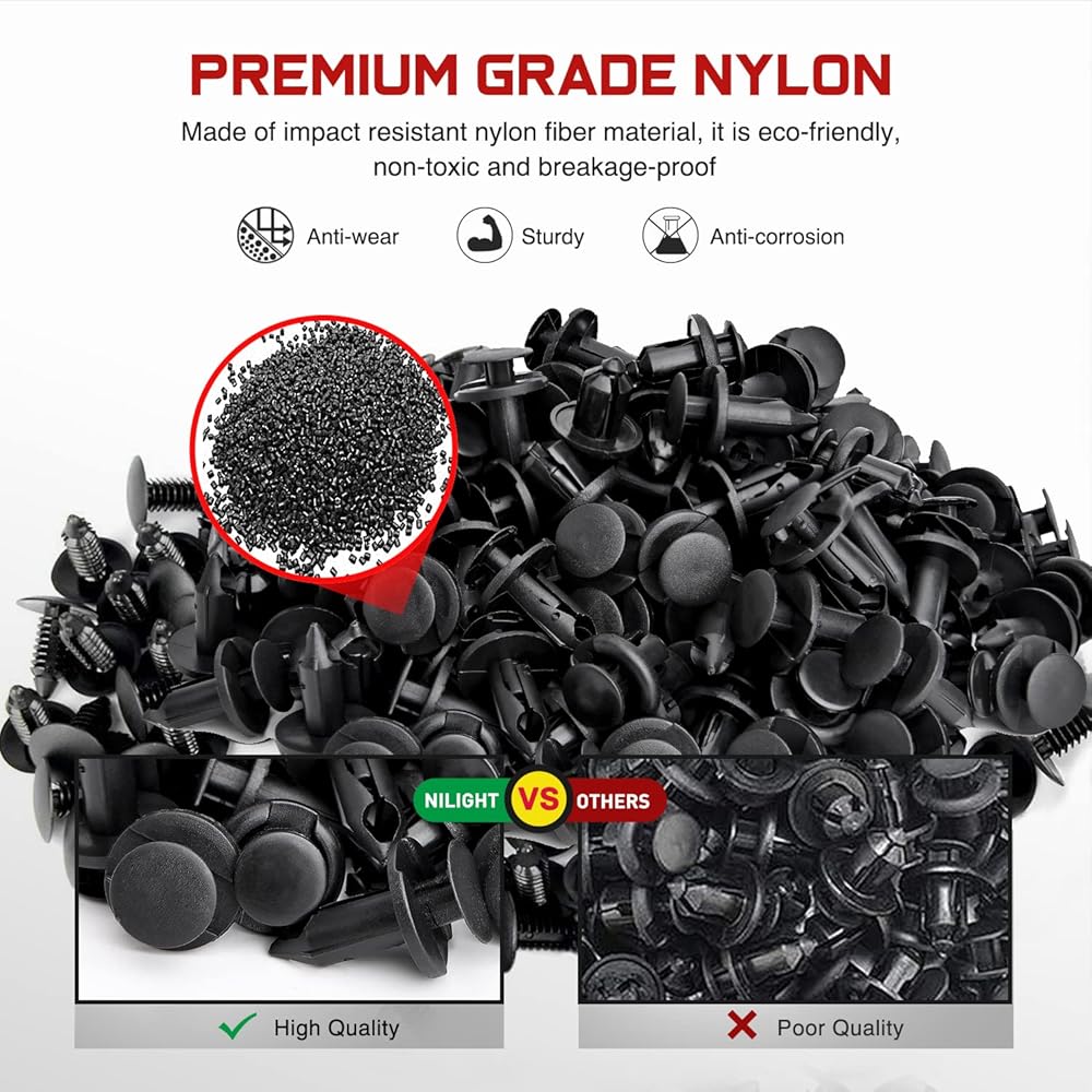 TOP QUALITY: - These car retainer clips are made of high-quality black nylon material, anti-wear and anti-corrosion, would not break or crack easily during use.