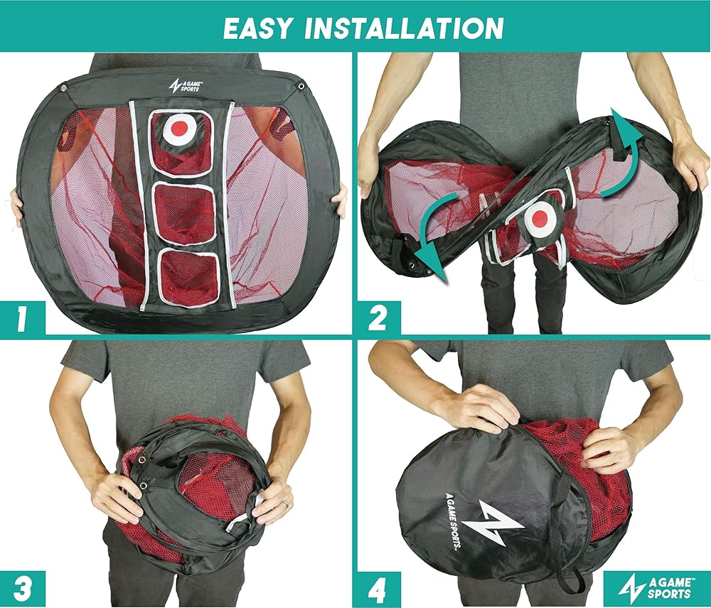 ✅ سهل الاستخدام: تصميم منبثق سهل الاستخدام من أجل إعداد سريع وسهل - لا يتطلب أي أدوات، بينما يعمل غلاف الفيلكرو الفريد على تأمين كرات الجولف؛ استخدمه للترفيه مع الأصدقاء والعائلة أو لجلسات التدريب الاحترافية، على الفور