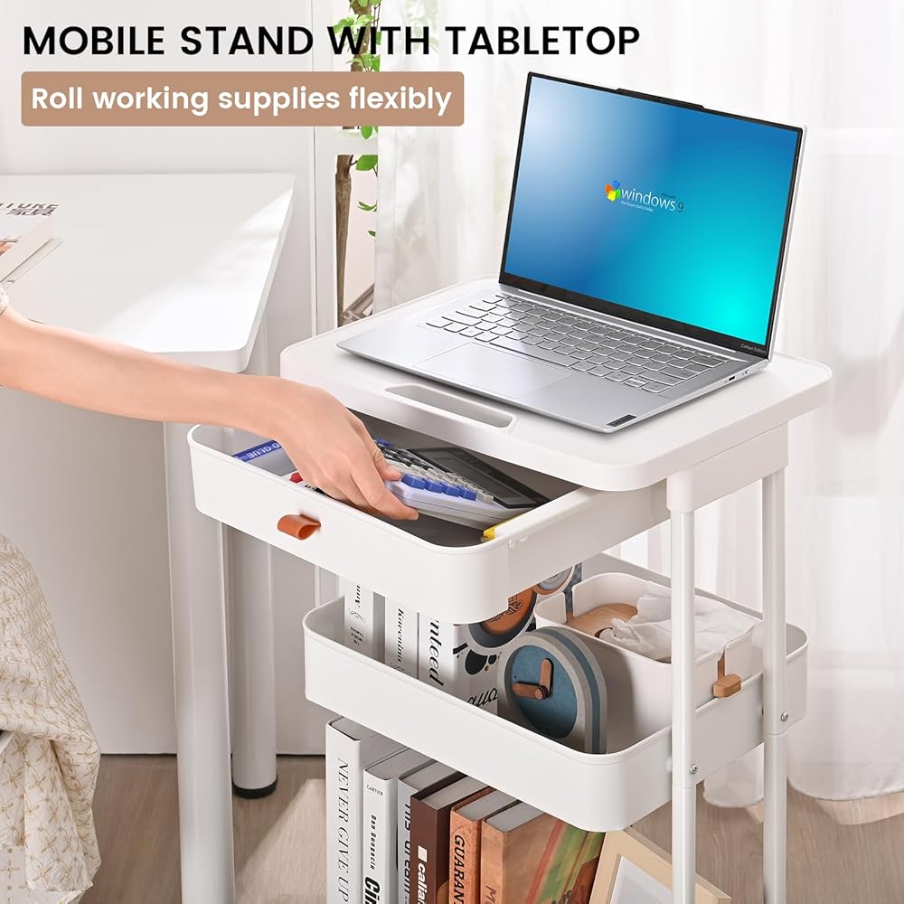 ♕ سطح طاولة ودرج يدوي - اللوحة المسطحة ذات المقبض المنحوت مصنوعة من البلاستيك القوي الذي يعمل كسطح طاولة، ومناسب للطابعة الصغيرة والكمبيوتر المحمول والمجلة والكتب والكوب. يوفر الدرج مساحة تخزين مدروسة للأدوات الصغيرة والخاصة