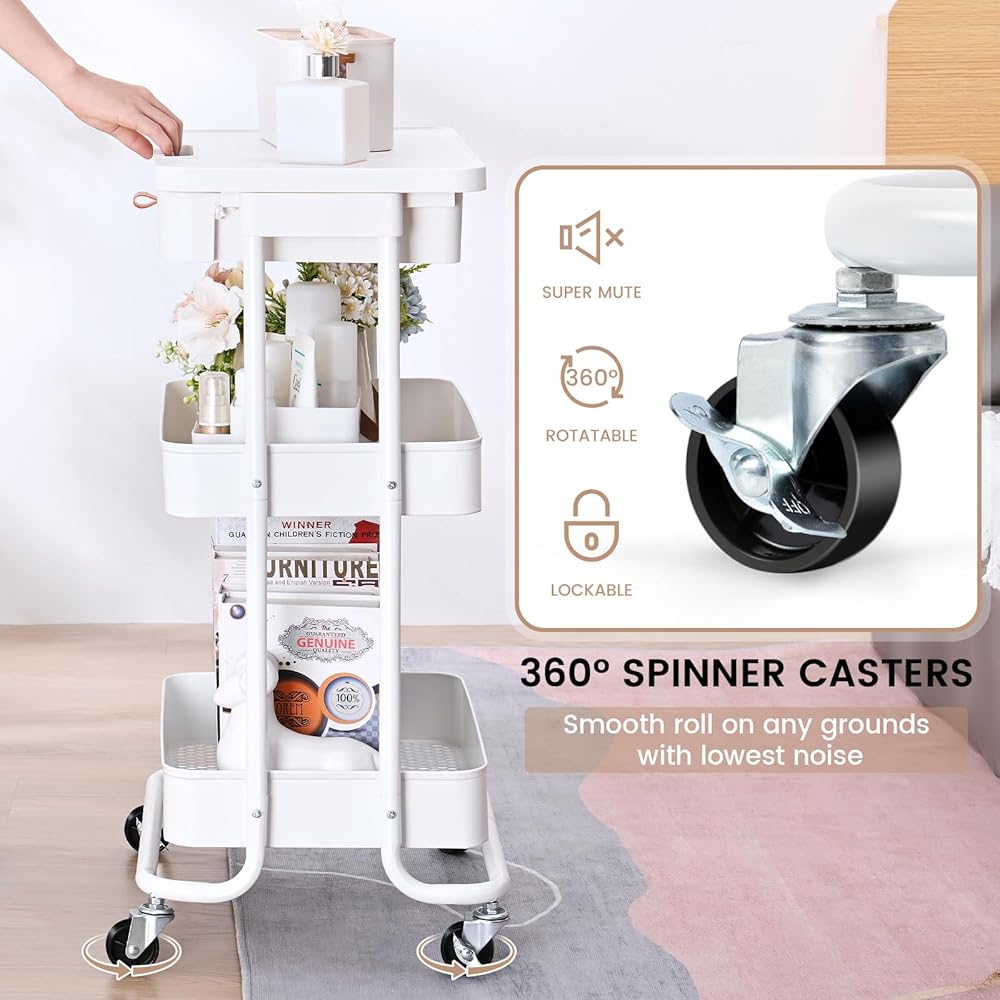 ♕ دوران سلس - عربة الأدوات المجهزة بـ 4 عجلات دوارة (2 قابلة للقفل) ومقبض على سطح الطاولة، تجعل العربة الدوارة سهلة ومريحة للتحرك أينما دعت الحاجة أو وضع العربة في مكان ثابت.