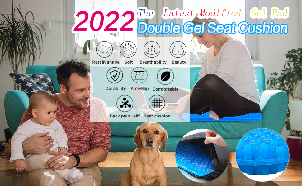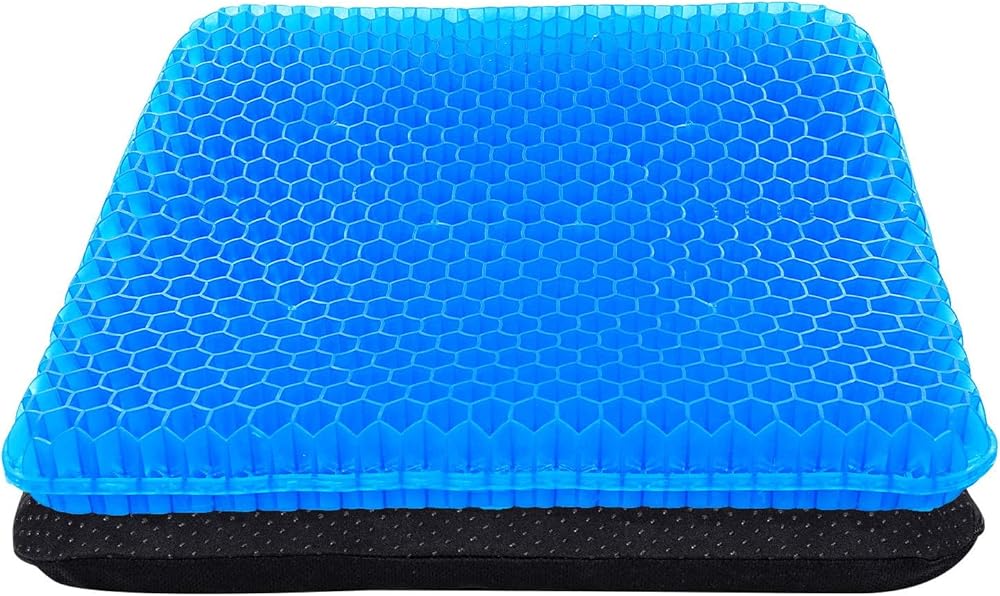 【وسادة مقعد مطورة وتصميم مزدوج السُمك】أحدث وسادة مقعد جل بتصميم مزدوج السُمك، وهي أكثر راحة وأكبر من غيرها. الحجم 16.5*14.5*1.6 بوصة، الوزن 1.1 كجم؛ تصميم قرص العسل يمكن أن يوفر أقصى قدر من الدعم والراحة مع تقليل التوتر، ويمكنك الجلوس لفترة طويلة دون الشعور بالتعب. التصميم المزدوج ناعم بما فيه الكفاية، ولا يمكنك تخيل راحته، يمكنك اختبار نعومته بالبيض!