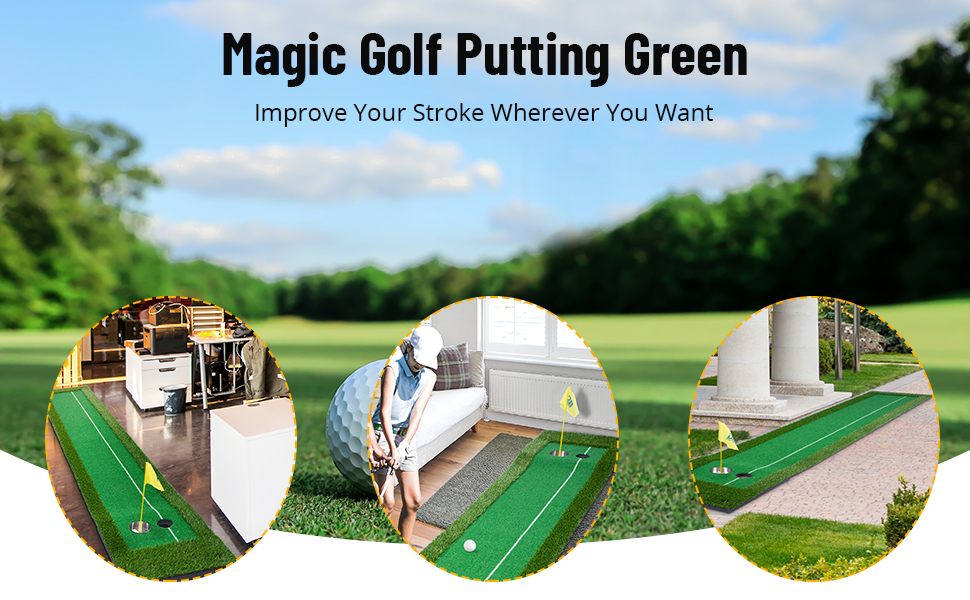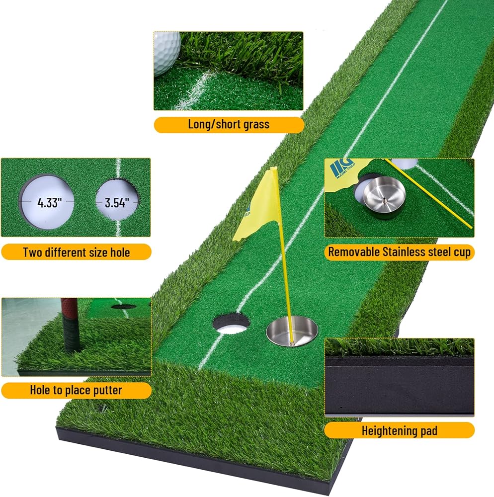 【ملعب جولف صغير في المنزل】عشب صناعي من الدرجة التجارية لمحاكاة الظروف الخضراء الحقيقية، سطح ملفوف حقيقي مع تصنيف ستيمب الأخضر المماثل. قاعدة مركبة أكثر سمكًا وعالية الجودة يمكن وضعها بسهولة أكبر دون تموج.