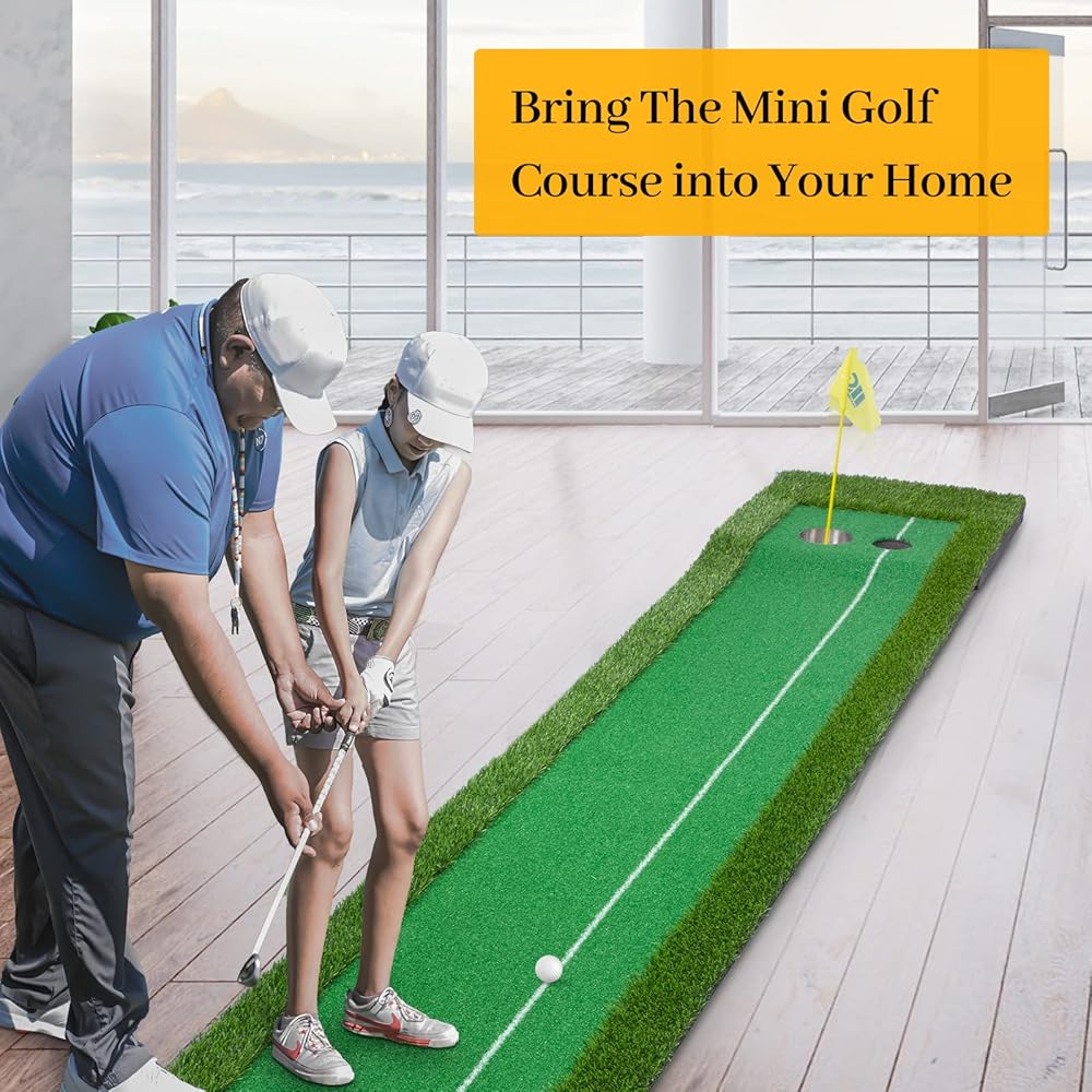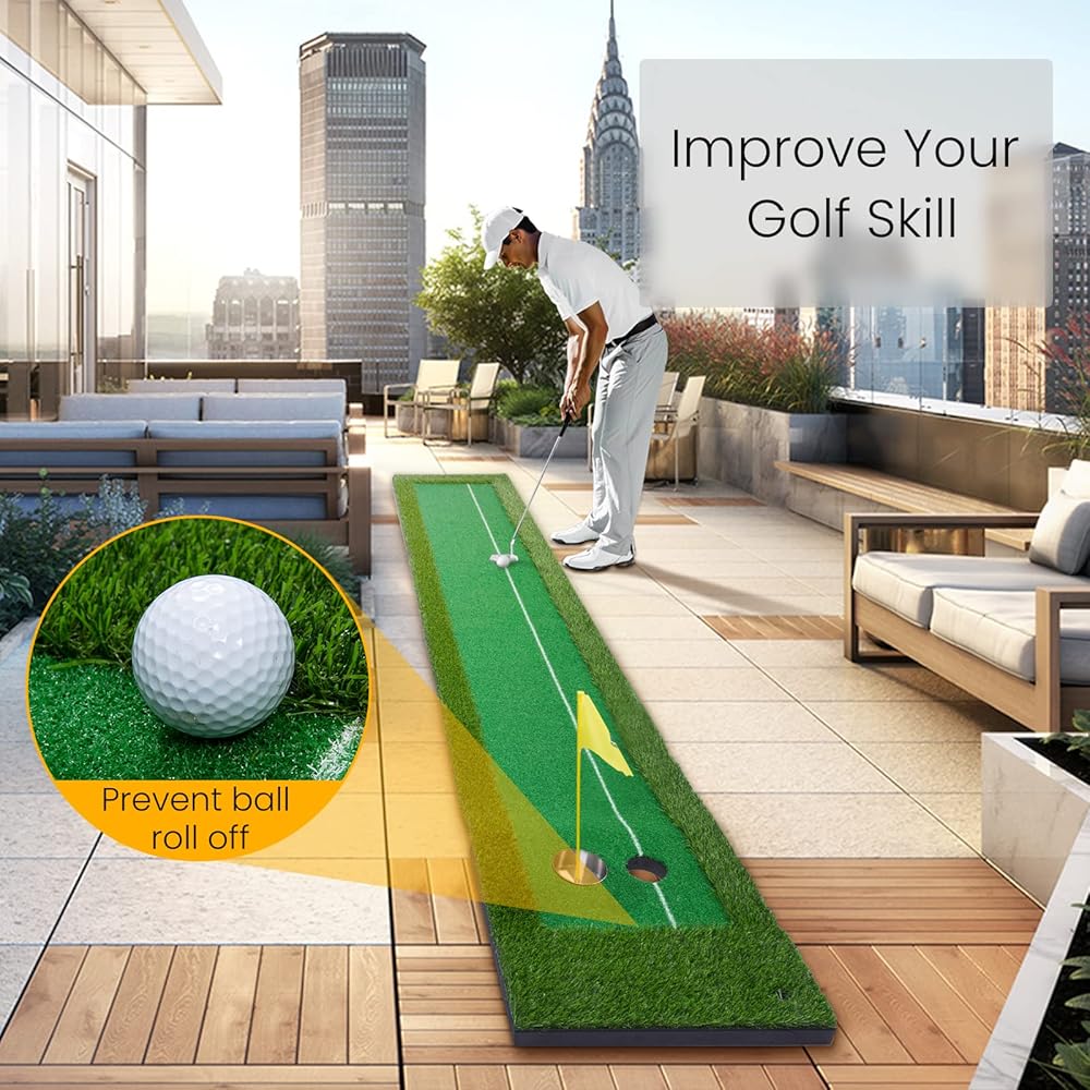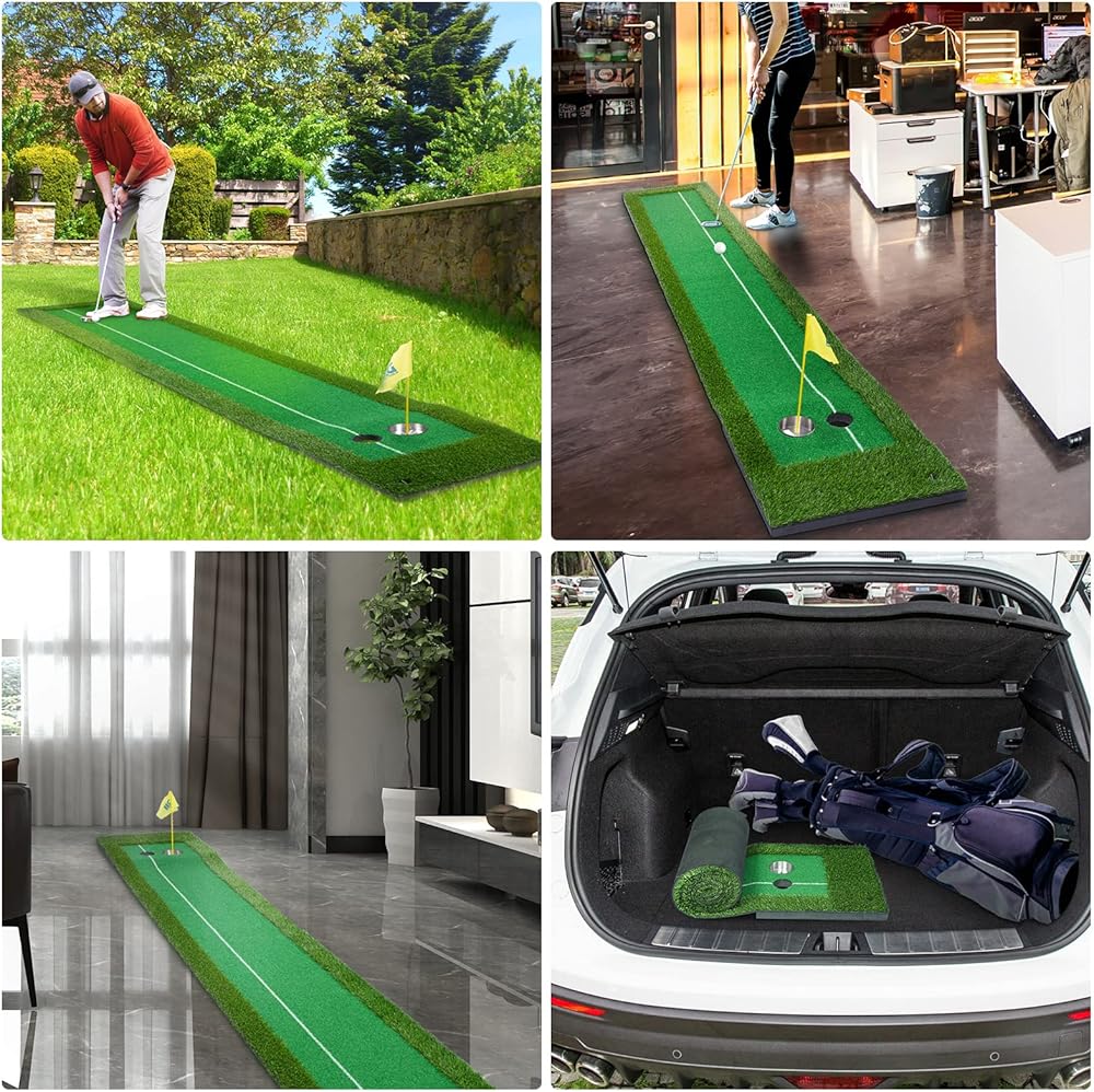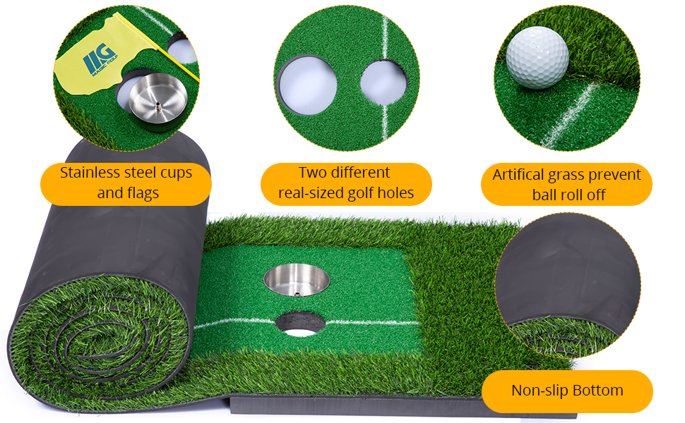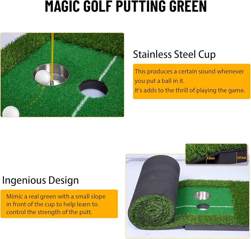 【تصميم مبتكر】تحاكي سجادات وضع السيارة الخاصة بنا اللون الأخضر الحقيقي مع منحدر صغير أمام الكوب للمساعدة في تعلم التحكم في قوة الضرب. أضف خط التصويب، وفائدته في التدريب والحصول على تعليقات جيدة على كل تمريرة، وتعزيز دقة كل لقطة.