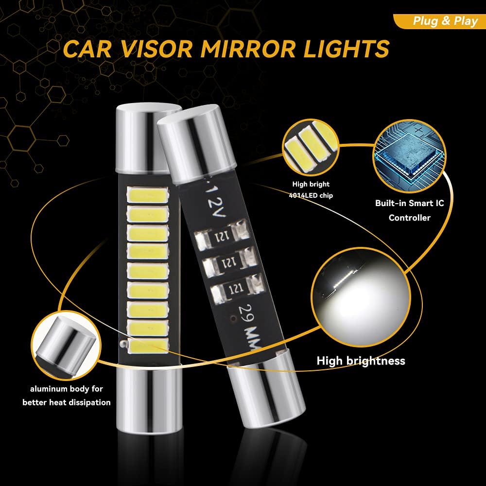 الميزات - نمط LED: 29 مم اكليل LED، خرج 400 لومن. الحجم: 6 مم × 29 مم الجهد الكهربي: 12 فولت * 0.02 أمبير، درجة حرارة اللون: 6500 كلفن