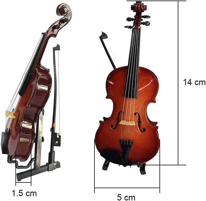 آلانو نموذج كمان مصغر للزينة آلة موسيقية صغيرة مع القوس والحامل (14 سم)