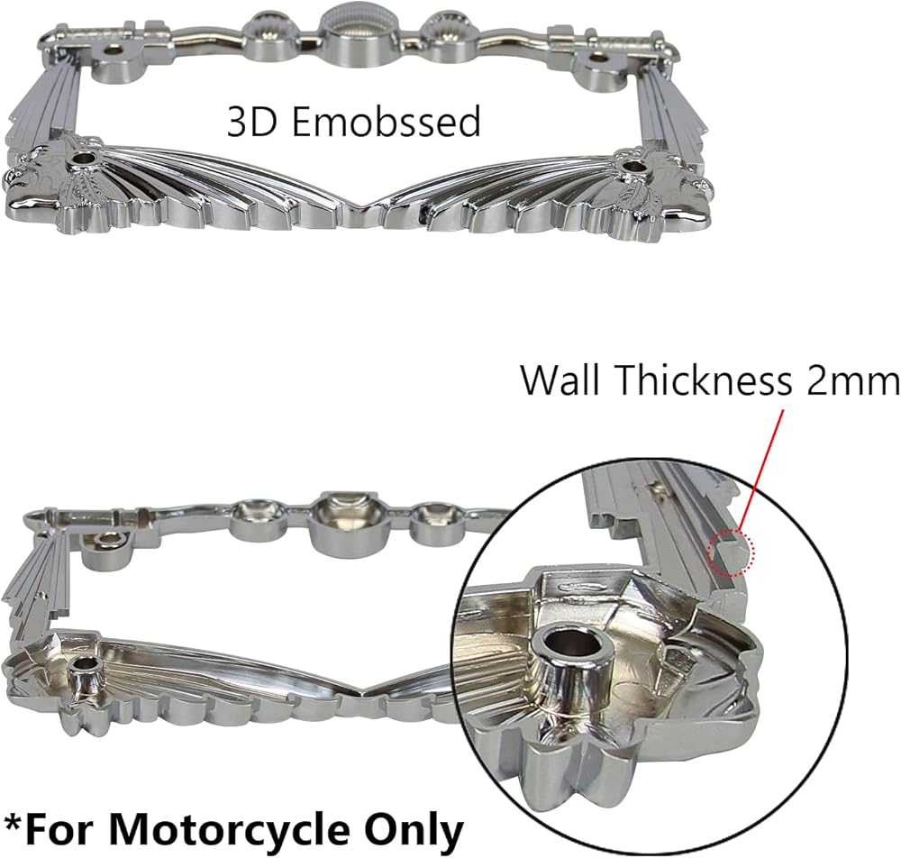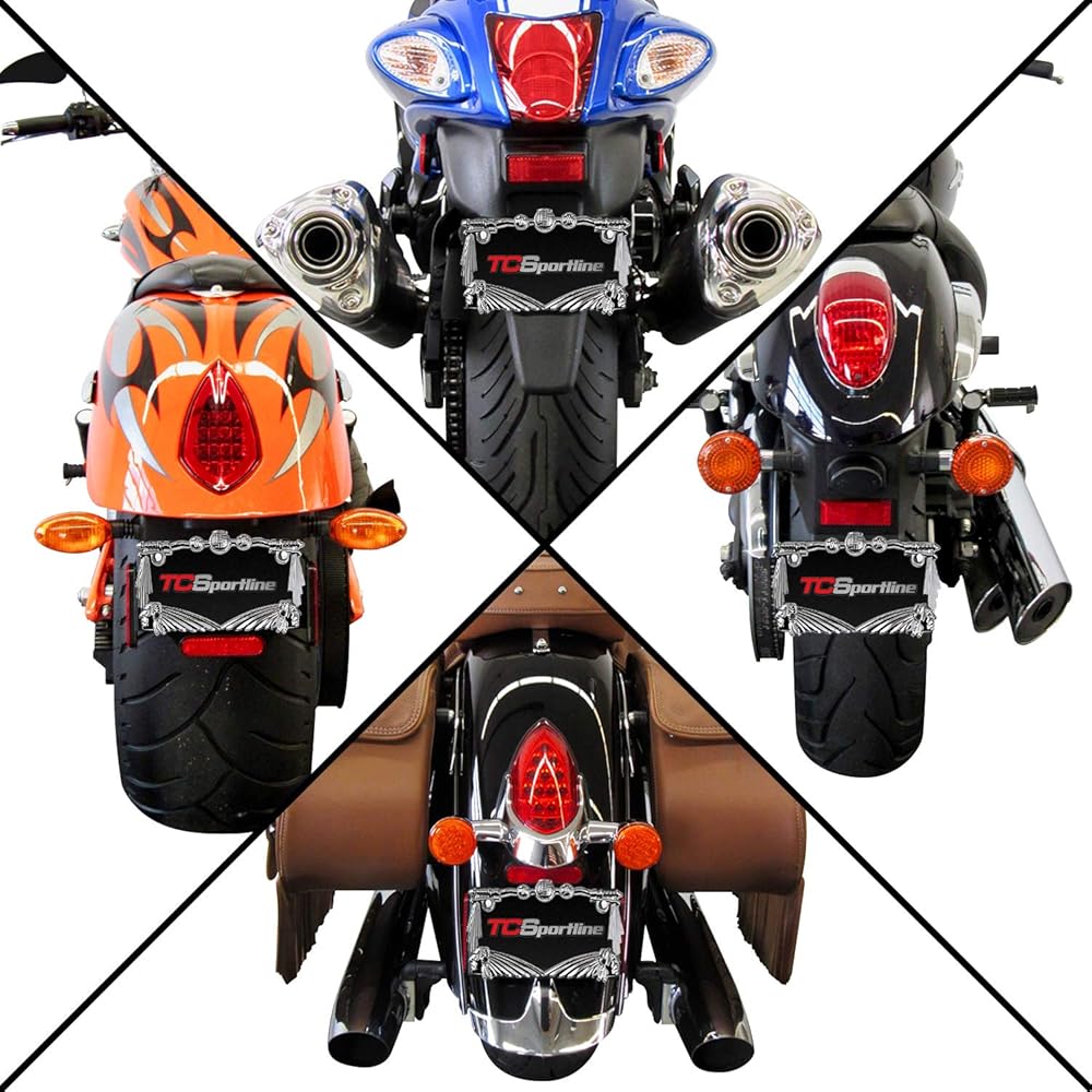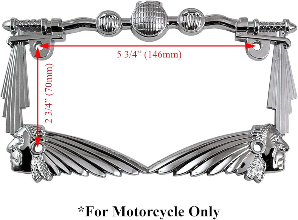TC Sportline LPF248-C مقود ثلاثي الأبعاد ورئيس هندي نمط الزنك معدن الكروم إطار لوحة ترخيص الدراجة النارية