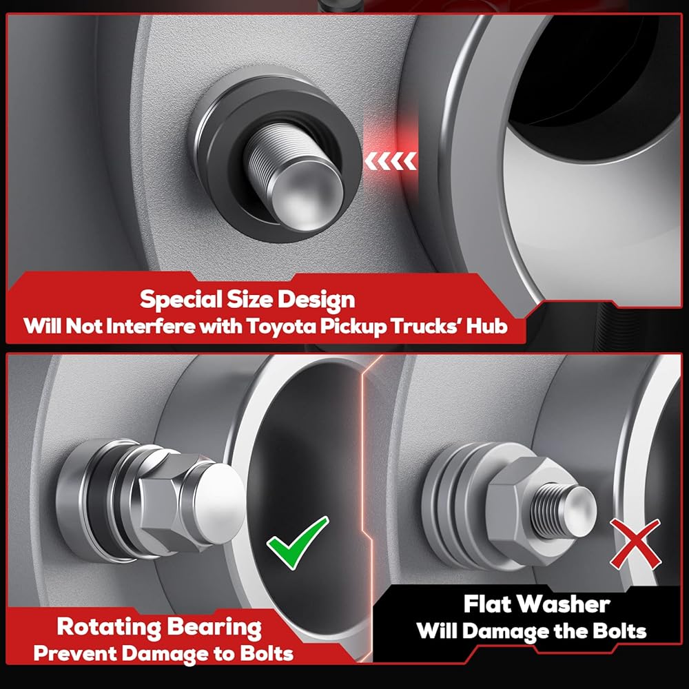 الإعداد: تناسب معظم عجلات السيارات والشاحنات الخفيفة. تم تصميم حجم المنتج خصيصًا، ويمكن استخدامه على التقاطات تويوتا دون تداخل مع المحور. الحد الأقصى المناسب لكل من M14x1.5 و9/16-18.