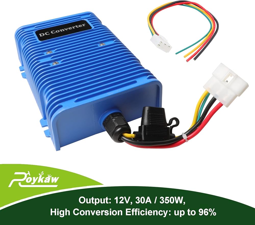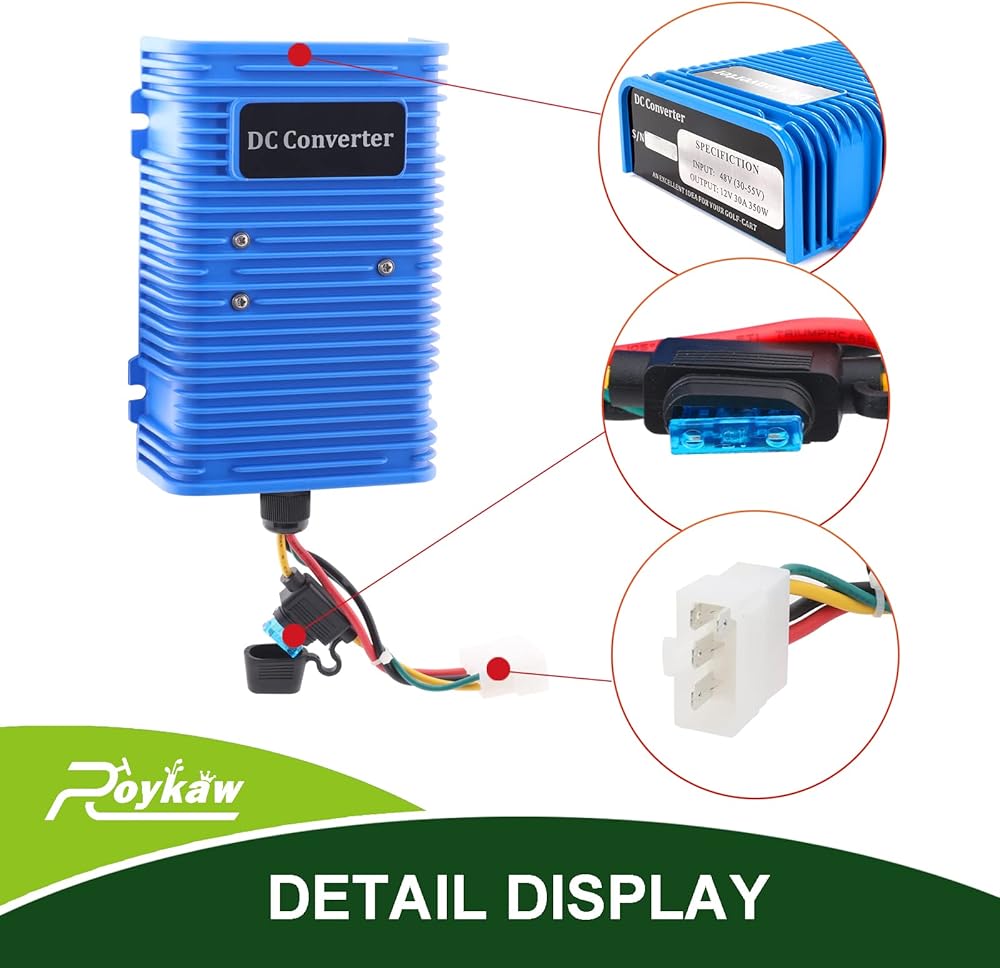 Roykaw Golf Cart 36V 48V to 12V Voltage Reducer Regulator DC Converter Compatible with EZGO Club Car Yamaha,Dual Power Source,30A 360W