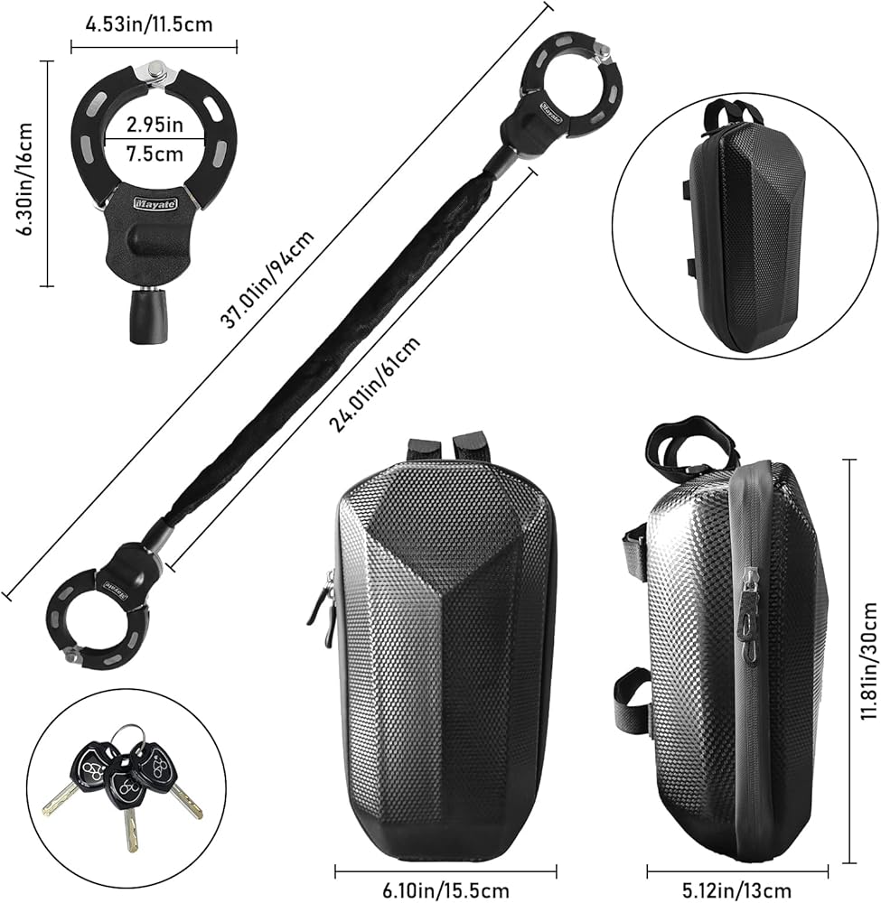 Scooter Chain Lock with Scooter Bag, Security Anti-Theft Bike Lock, Handcuff Chain Lock and Bag for Bike Electric Scooter, Motorcycle, Bicycle, Electric Scooter Accessories