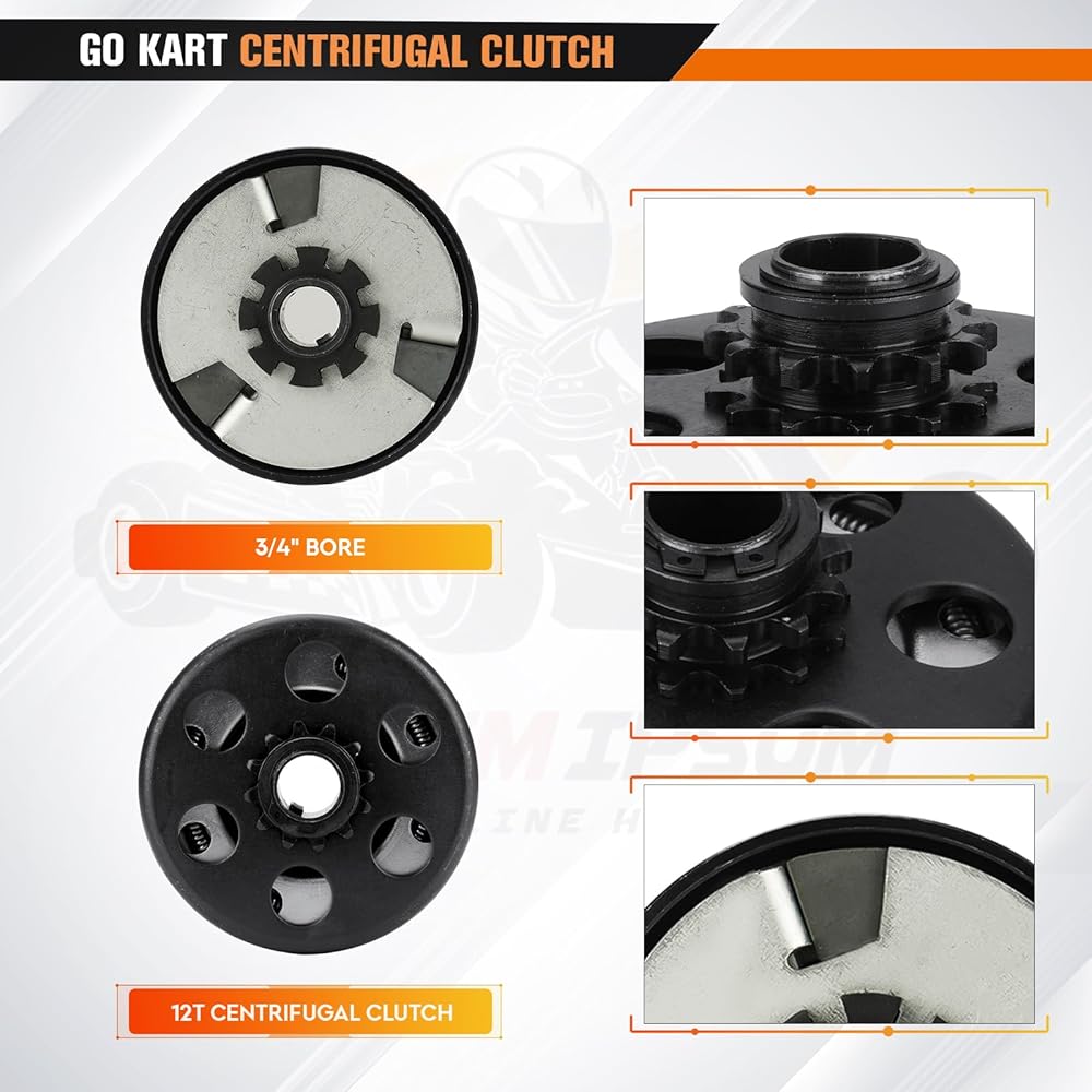 【12 Tooth Centrifugal Clutch】This go kart Clutch 3/4" bore for 212cc Predator Engines, 12 Tooth for 35 chain. Fit Briggs & Stratton 2 - 6.5 HP with 3/4" shaft 212 212cc predator engine clutch.