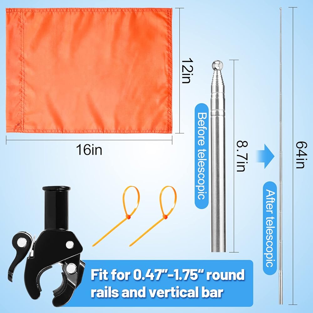 محتويات العبوة: سوف تحصل على قطعة واحدة من العلم البرتقالي مقاس 12 × 12 انش، 1 قطعة سارية علم، 1 قطعة قاعدة قابلة للتعديل، 2 قطعة من ربطات النايلون البرتقالية، 1 دليل تعليمات، المجموعة كاملة، مما يسمح بحمل القوارب التي تسحب الأشخاص على الزلاجات المائية أو الأجهزة المماثلة واستخدامها للحفاظ على سلامتهم أثناء ركوب القوارب.