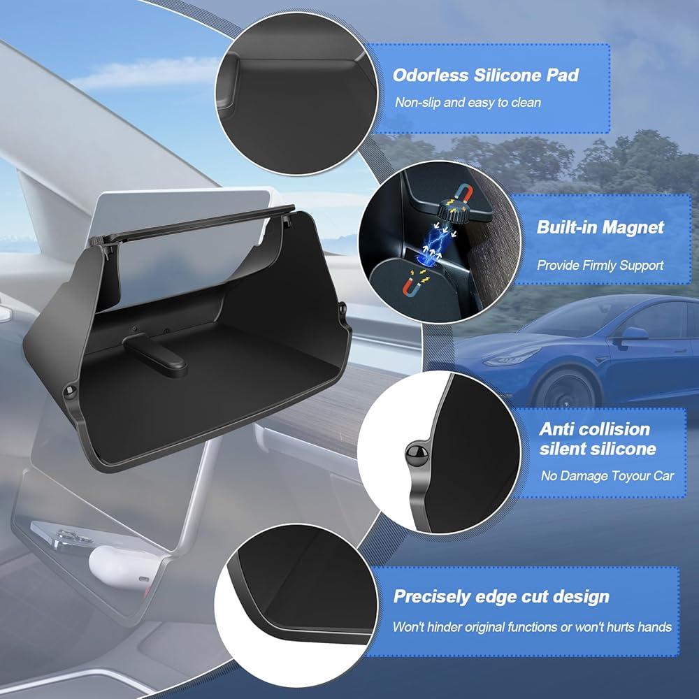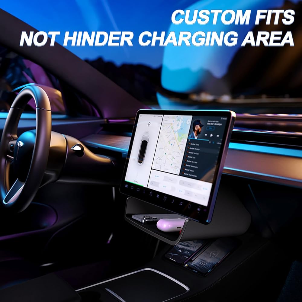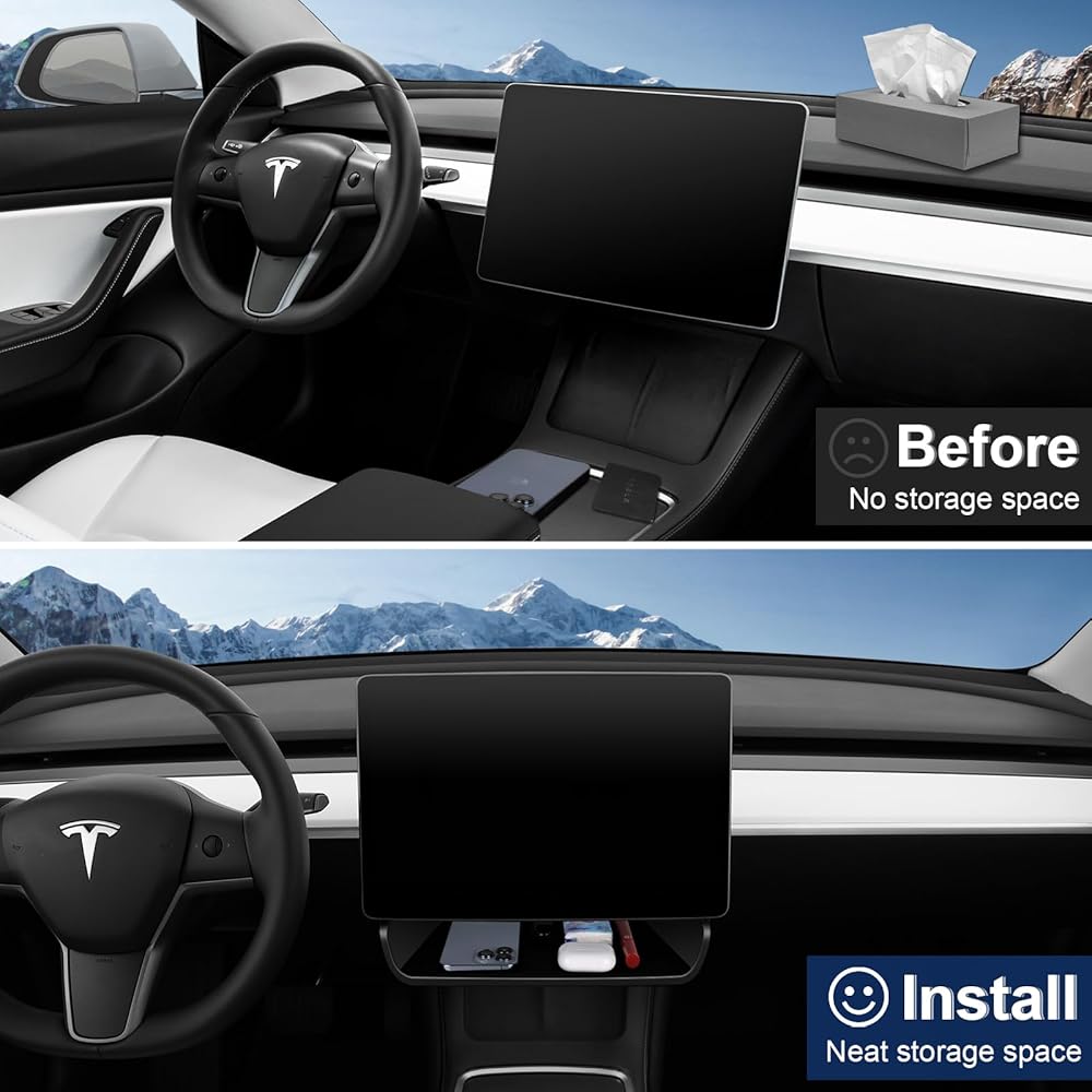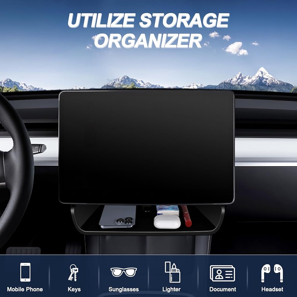 • 【مضاد للانزلاق وسهل التنظيف】صندوق XINTUO أسفل الشاشة لملحقات طراز Tesla 3 موديل Y 2024-2021 مصنوع من مادة أكريليك عالية الجودة متينة ومتينة. والبطانة الداخلية عبارة عن وسادة سيليكون مضادة للانزلاق ومضادة للانزلاق. - خشخشة تحافظ على العناصر في مكانها وصامتة عند التسريع أو الفرامل. يمكن خلع وسادة السيليكون الداخلية عديمة الرائحة لغسلها. صينية الشاشة الخلفية مصنوعة من غلاف بلاستيكي ABS عالي الجودة.