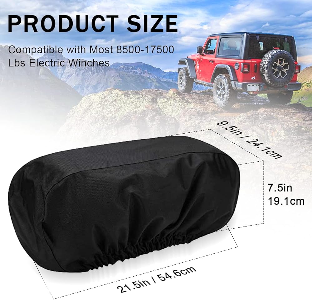 Our cover is compatible with a variety of winches in the 8,500 to 17,500-pound capacity range, making it the perfect choice for any outdoor enthusiast. At 21.5” x 9.5” x 7.5” (LxWxH), our cover is versatile and easy to use.