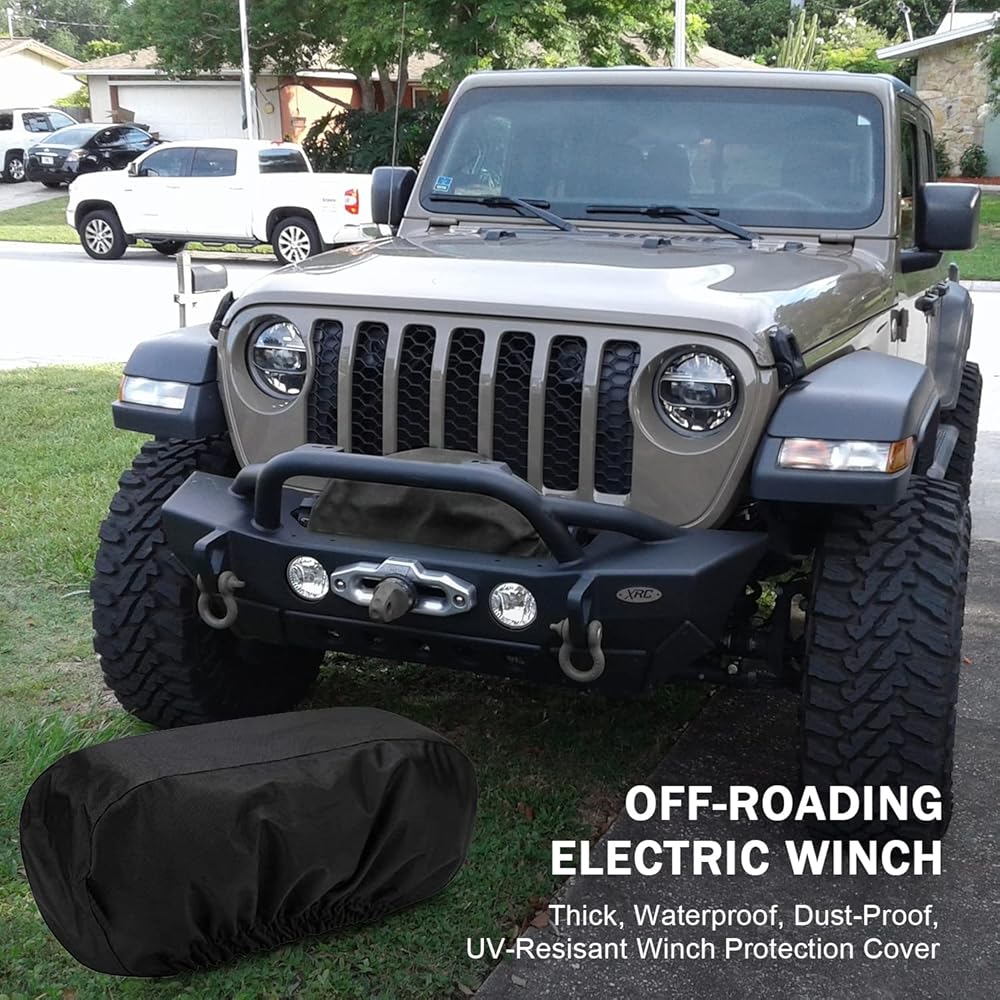 Protect your electric winch from the elements with our Heavy Duty Waterproof Winch Cover. Made of 600D oxford fabric, it's weather-resistant, dust-proof, and designed to withstand rain, snow, and hail. Plus, the UV-resistant design ensures exceptional durability to sunlight.