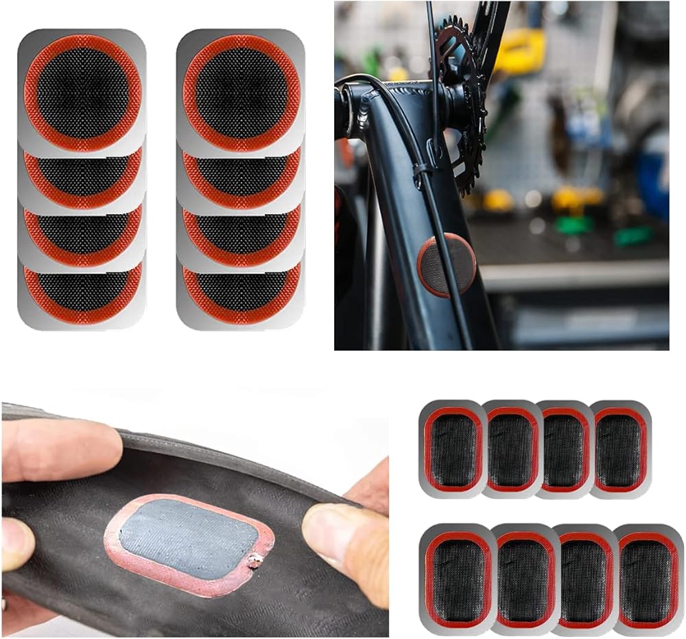 🚵رقع ما قبل اللصق: إجمالي الرقع ذاتية اللصق 24 قطعة في نمطين مختلفين، بما في ذلك المستطيل والمستدير، جميعها ملتصقة مسبقًا لسهولة الاستخدام، ويمكن لصقها على أنبوب الإطار بسهولة دون أي غراء، أسهل بكثير وأسرع في الإصلاح. ، ويمكنك الاستمرار في الركوب بعد الالتصاق.