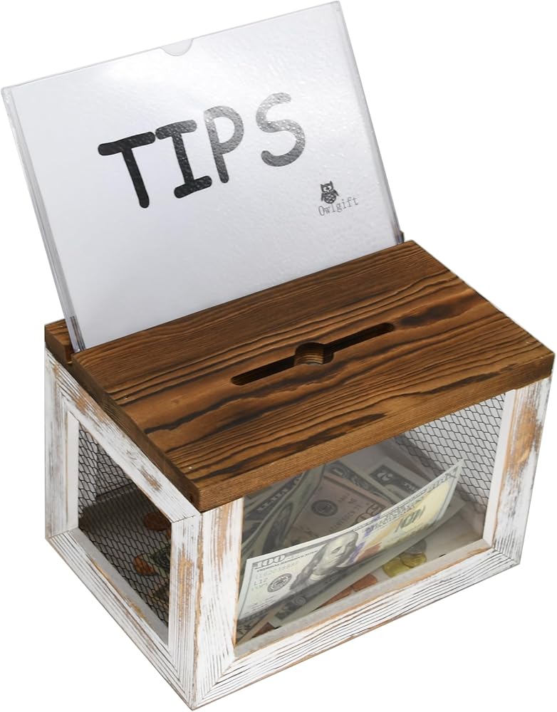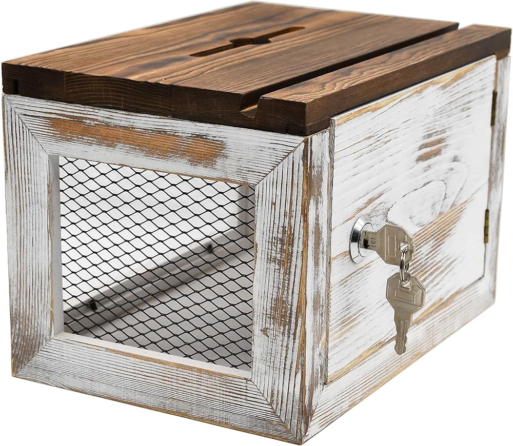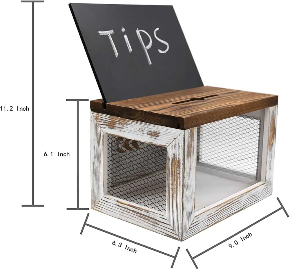 صندوق اقتراحات خشبي قابل للقفل من Owlgift مع لوحة أكريليك، تصميم شبكة سلكية، صندوق جمع بطاقات الاقتراع والتبرعات، تخزين الأطراف التجارية مع سبورة قابلة للإزالة - مغسولة باللون الأبيض ومحترقة
