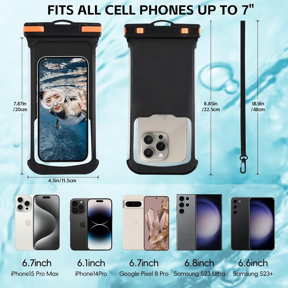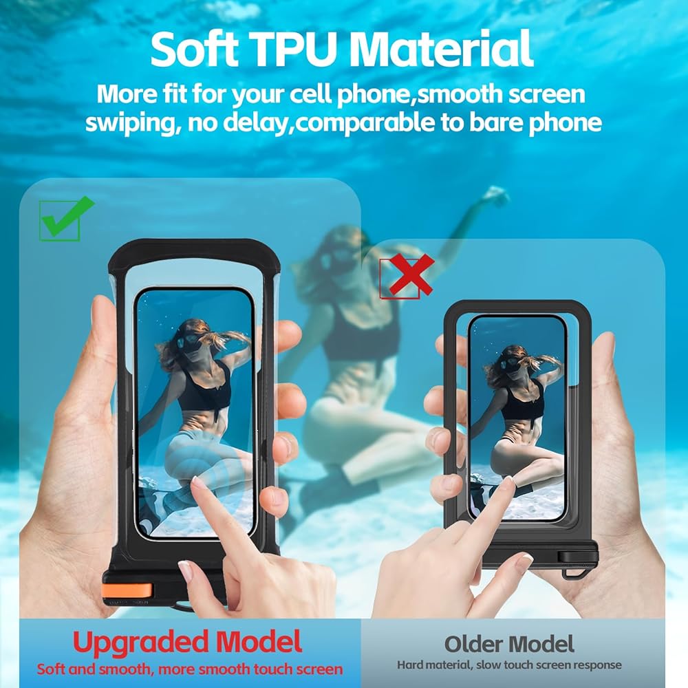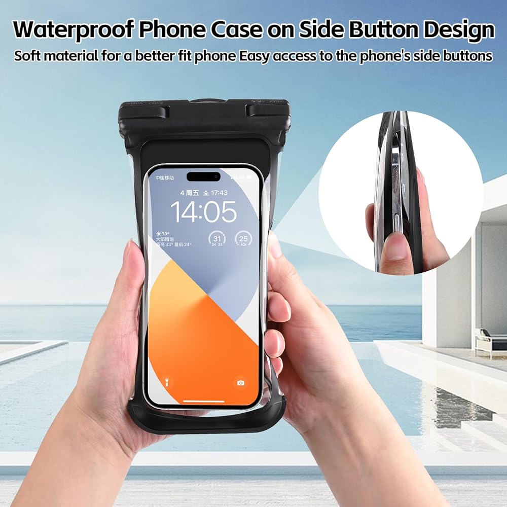 • [شهادة مقاومة للماء IPX8] تم تصميم جراب الهاتف المقاوم للماء هذا مع قفل انحناء الإصبع، ويمكن فتحه بشكل أعمى، ولن يخدش أصابعك، إبزيم قفل قوي، يمكن أن يتحمل 300 جرام، يمنع بشكل فعال الحقيبة من الانحراف العميق، أحدث تكنولوجيا الضغط الساخن السلس يمكن أن يوفر لهاتفك حماية كاملة ضد الماء، مما يمنع هاتفك من الدخول إلى الماء والثلج والرمل والغبار. شهادة مقاومة للماء IPX8، تحت الماء 100 قدم/30 مترًا دون أي تأثير.