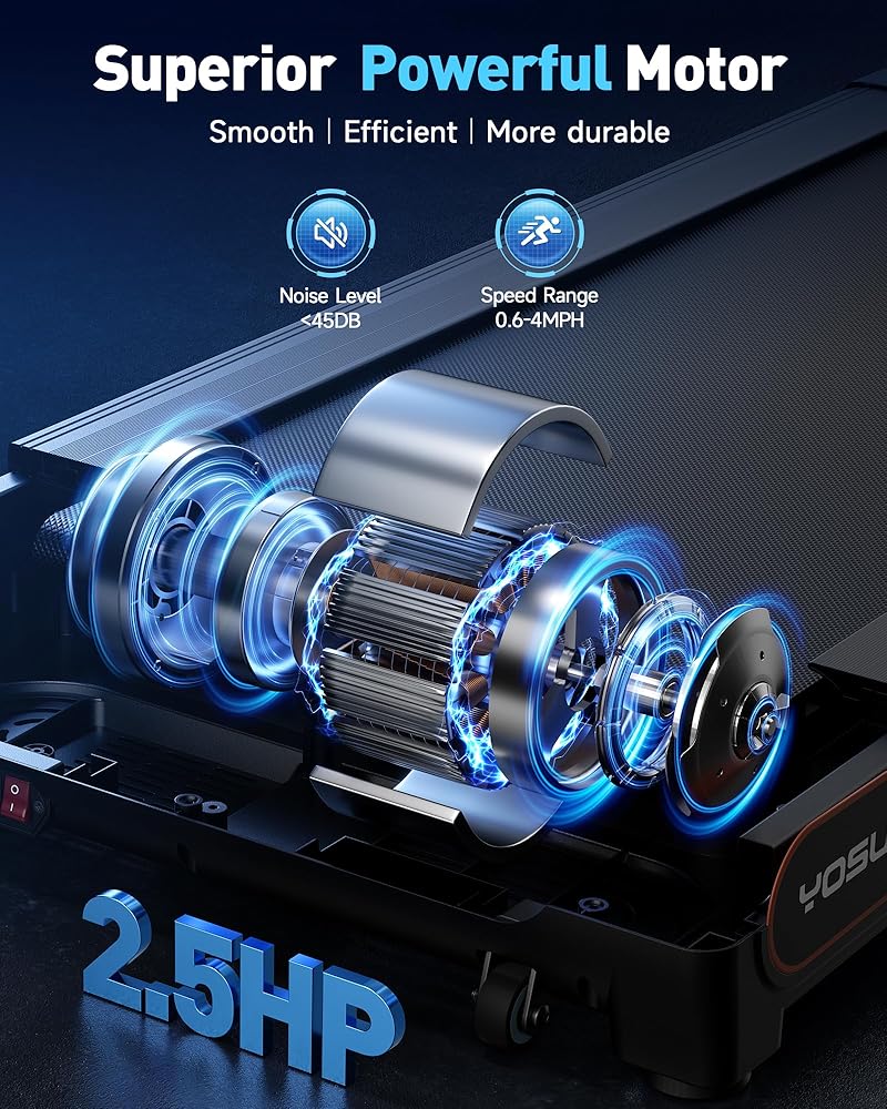 【الكفاءة الصامتة】جرب القوة الصامتة لأجهزة المشي لدينا، المجهزة بمحرك متطور بقوة 2.5 حصان. فهي سلسة وهادئة، وتضمن بقاء عملك أو اجتماعاتك عبر الإنترنت دون إزعاج أثناء بقائك نشطًا.