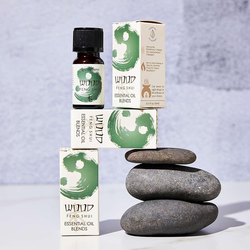 • مزيج موزع الزيوت العطرية فنغ شوي من أرومافومي (3 زجاجات × 10 مل) هو مزيج جميل من المريمية والشمر والبابونج والزنجبيل والباتشولي. سوف تجذب الرائحة الإيجابية والهدوء وتحفز الانتعاش
