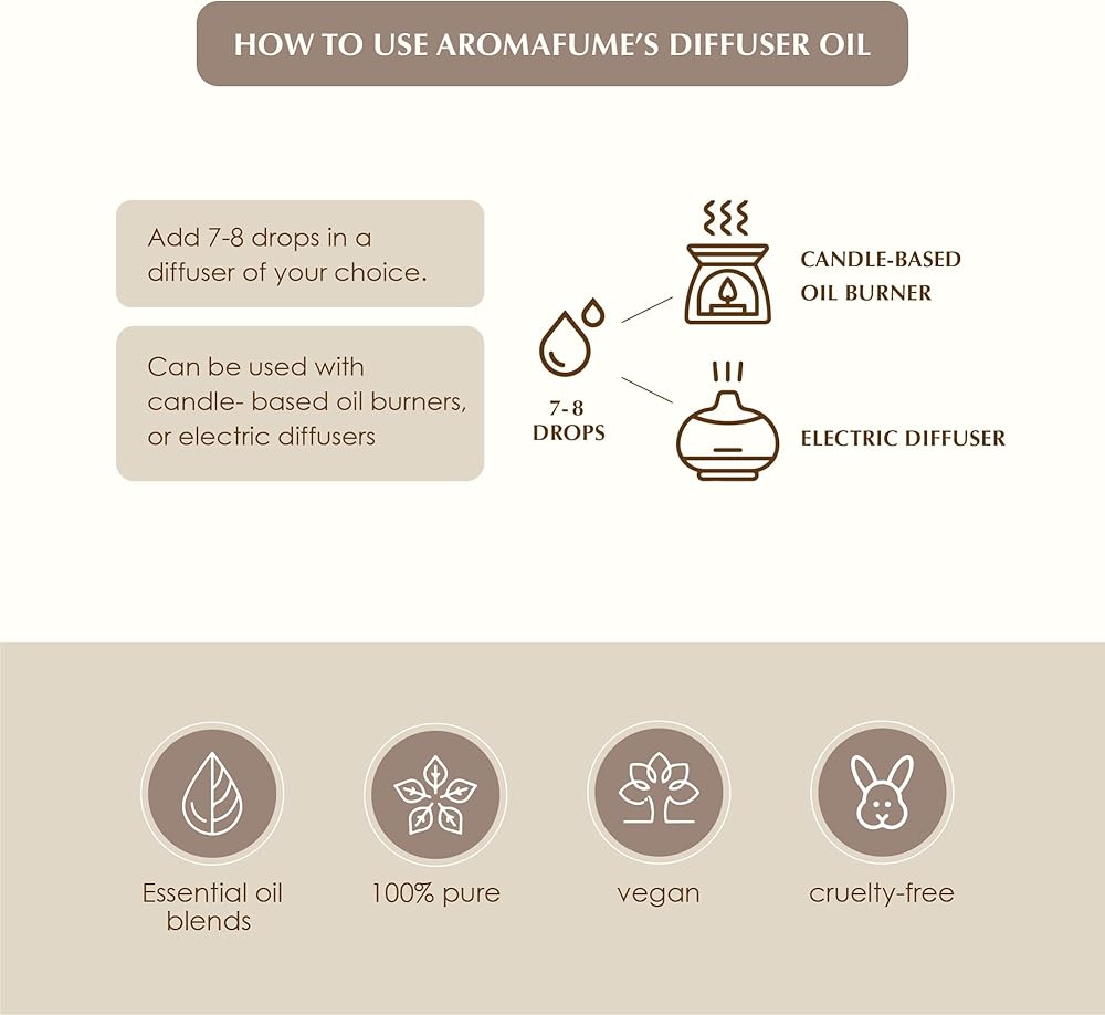 • كيفية الاستخدام: أضف 8-10 قطرات من الزيت إلى الماء وانشره باستخدام شمعة أو موزع إلكتروني. يتم تصنيع الزيوت العطرية العطرية باستخدام مكونات طبيعية من مصادر مستدامة. كل عطر مشتق من مجموعات مختلفة من المستخلصات العطرية والمستخلصات النباتية والزيوت الأساسية