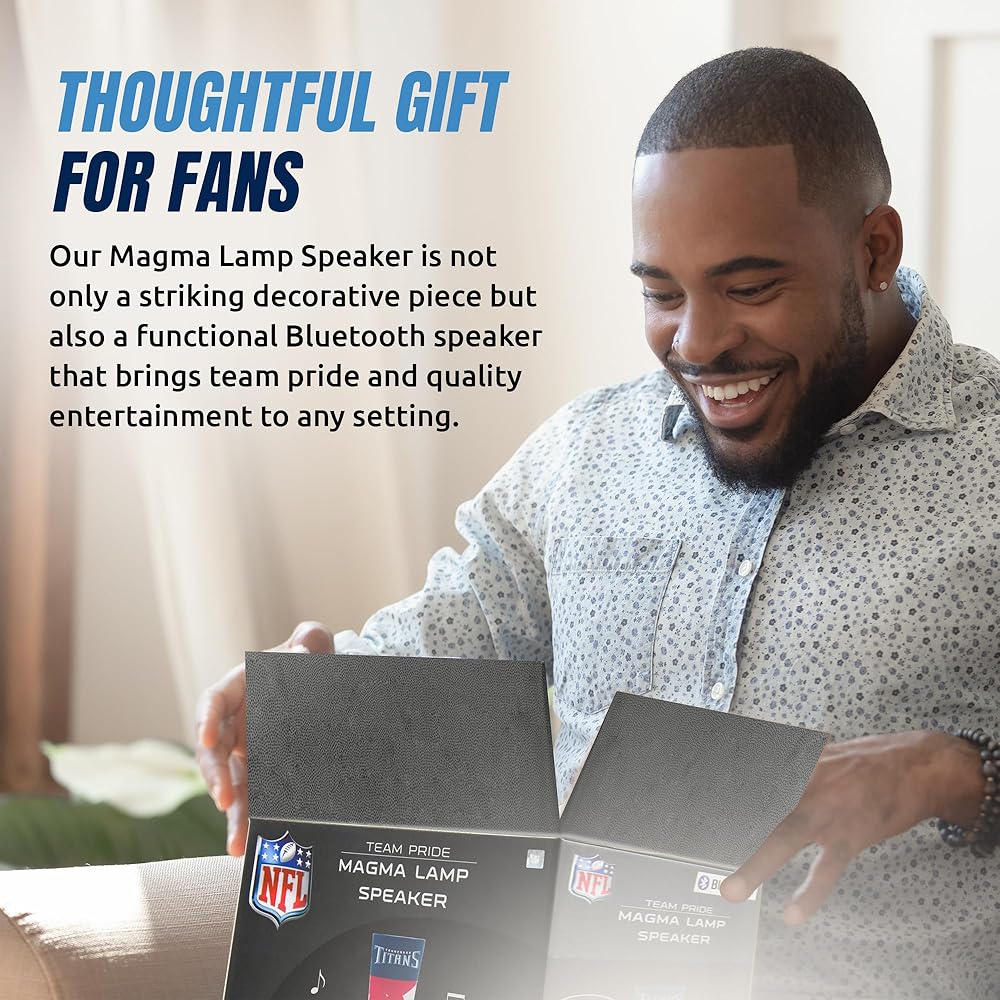 When it comes to adding the perfect touch to your favorite football team collection, this 2-in-1- Magma Lamp and Bluetooth Speaker makes the perfect addition to any room in the house. With unique and one-of-a-kind lighting and premium Bluetooth sound quality, you will never experience game days, music, podcast, or movies the same ever again. With virtually no setup required, the Magma Lamp is powered through a standard wall connection and uses a simple 30-watt bulb (included). Just plug it in, connect your devices, and enjoy hours of an audio/visual experience like youve never experienced! Approximately 16.5 inches tall. Made by Sporticulture.