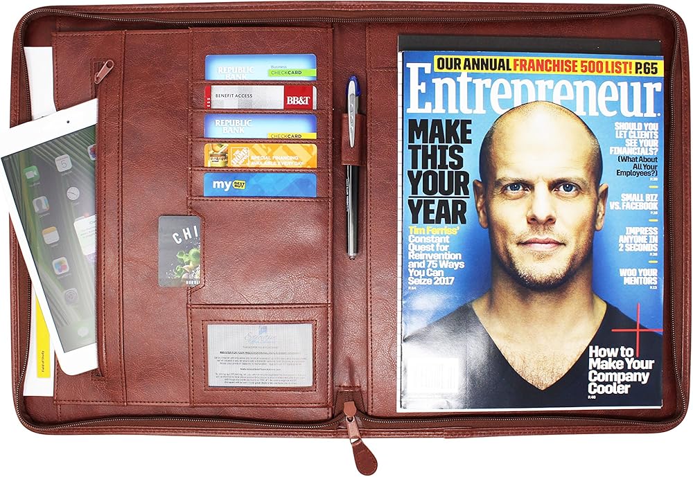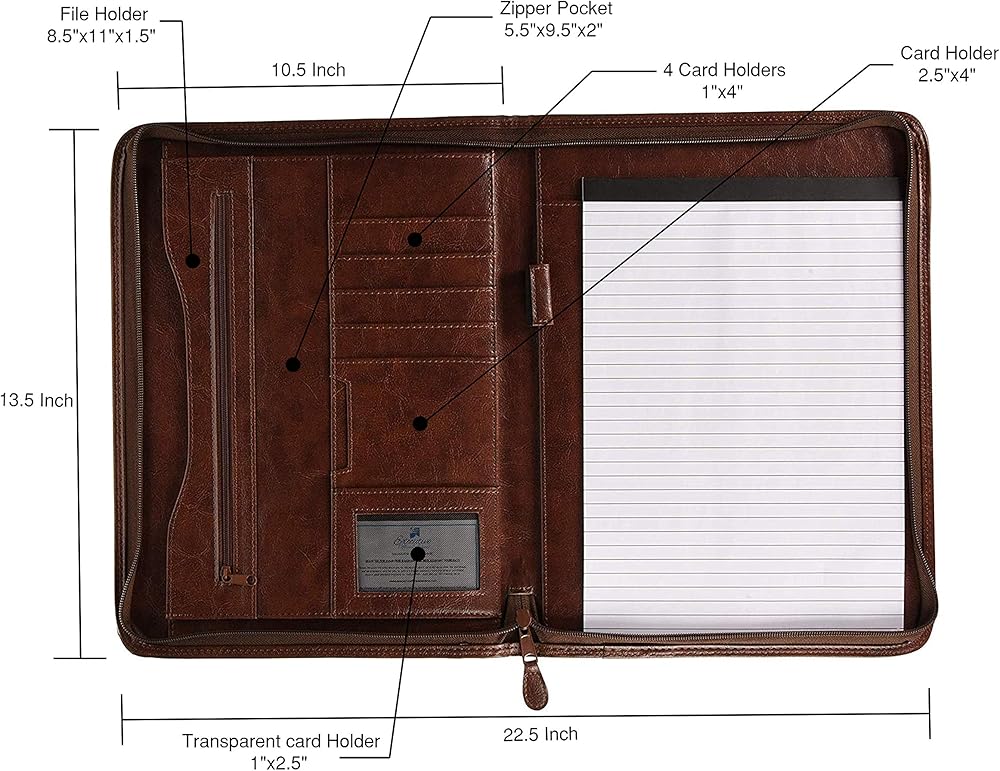 GREAT FEATURES – Pen/Pencil Holder, Refillable Paper Pad, Translucent ID Holder, Multiple Card Slots, And a Very Professional Looking Design With Quality Stitching And Material. This Interview Folder Shouts "Professional" With the Attractive Brown, or Dark Tan Color and Texture!