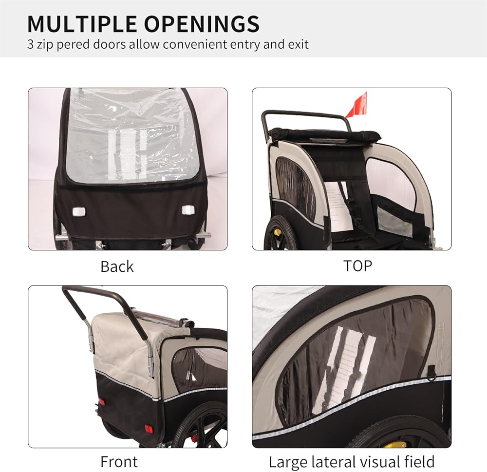 ✔【سعة مقعدين】يمكن لمقطورة الدراجة هذه أن تستوعب طفلين بشكل مريح، يصل وزن كل منهما إلى 88 كجم ويبلغ ارتفاعه أقل من 43.25 بوصة، مما يضمن رحلة آمنة وممتعة للأطفال.