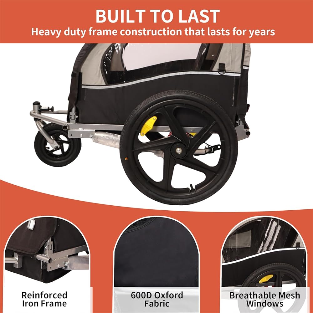 ✔[تصميم 2 في 1 سهل التحويل] مجهزة بخطاف عالمي للمحور الخلفي للدراجة، يمكن تحويل هذه المقطورة إلى مقطورة لسهولة النقل (قد لا تكون متوافقة مع الدراجات الكهربائية. يلزم إزالة العجلة الأمامية للاستخدام كمقطورة دراجة). ).