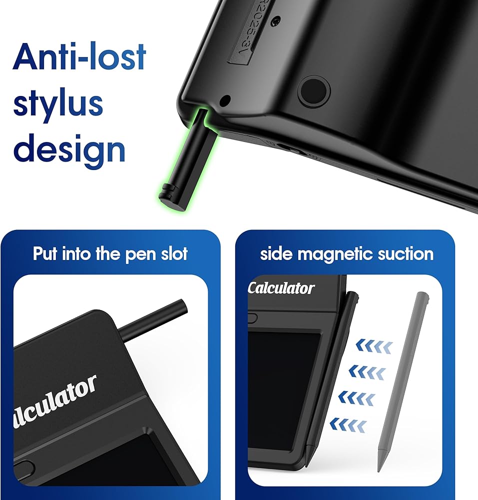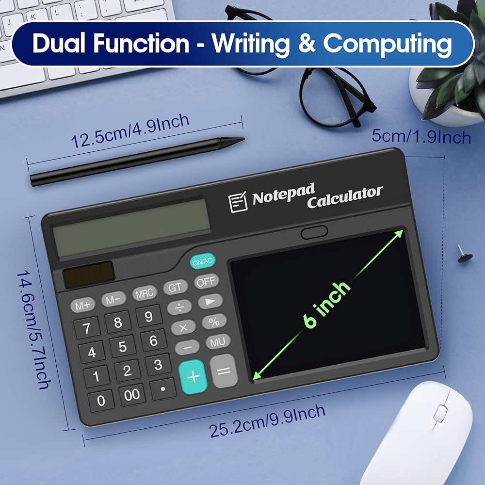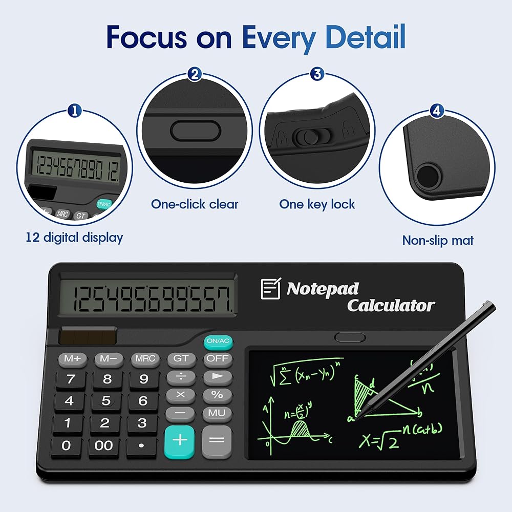 • حاسبة متعددة الوظائف: تجمع حاسبة الأعمال هذه بين ثلاث وظائف - آلة حاسبة أساسية، وقلم لتدوين الملاحظات، وشاشة كتابة - لمساعدة المستخدمين على إكمال العمليات الحسابية وتسجيل الملاحظات والرسومات بسهولة. مثالي للمكتب والعمل والمدرسة والمتجر والاستخدام المنزلي. مثالية لموظفي البنك ومحللي البيانات والحسابات المالية.