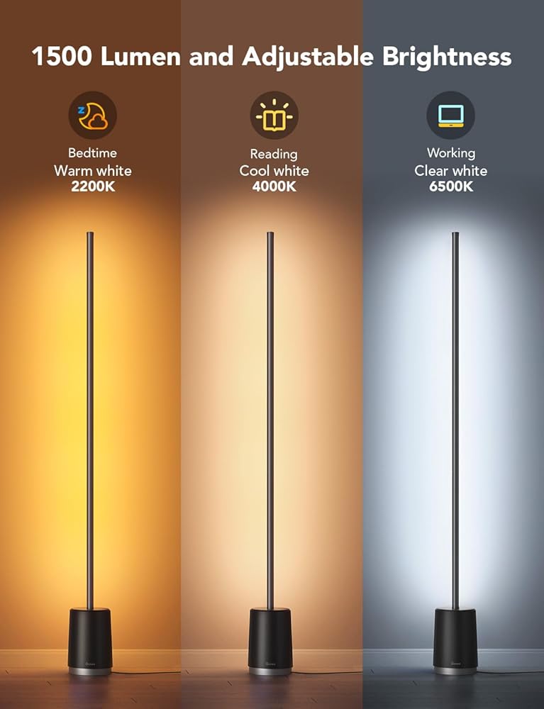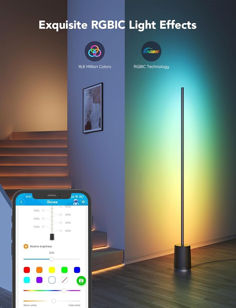 تقنية RGBICWW المتطورة: استمتع بشاشات العرض متعددة الألوان حسب الطلب من 16 مليون لون إجمالي، و2200k-6500k لون أبيض دافئ/بارد، و1500 لومن من السطوع. أجواء راقية لاستضافة اللقاءات ومشاهدة الأفلام أو القراءة والاسترخاء.