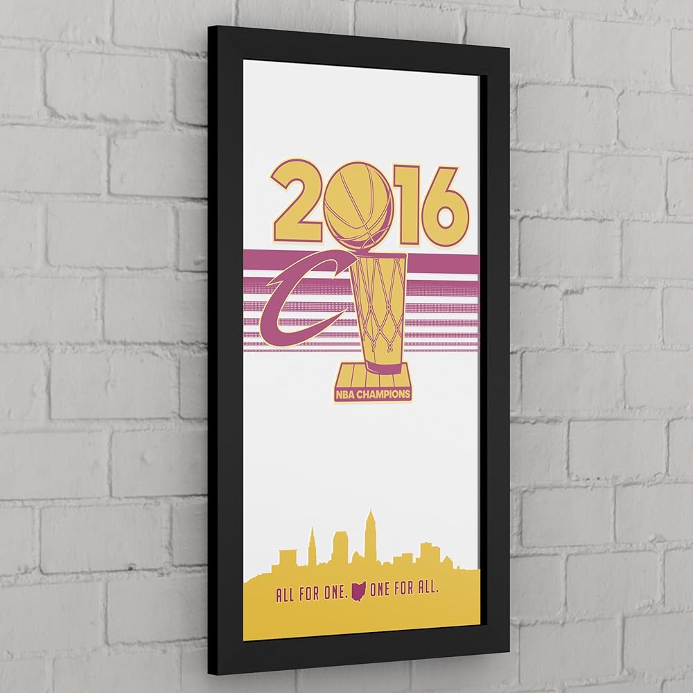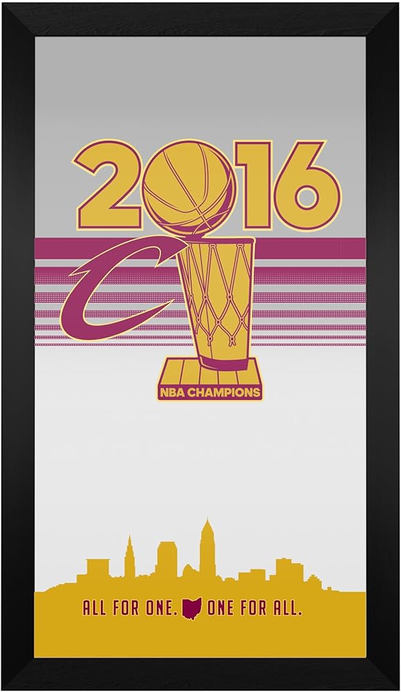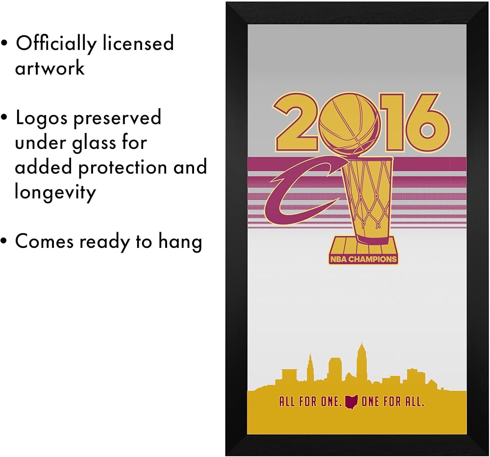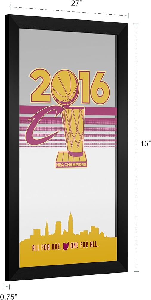 مرآة حائط عالمية للعلامة التجارية - مرآة مستطيلة بإطار أسود جاهزة للتعليق من كليفلاند كافالييرز 2016 NBA Champions - للحانة أو غرفة الألعاب أو المرآب أو شريط المنزل